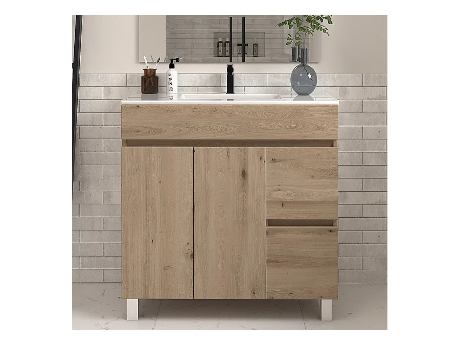 Meuble de salle de bain 70cm simple vasque sans miroir sur pieds avec portes et tiroirs - cambrian (chêne clair) - HARO