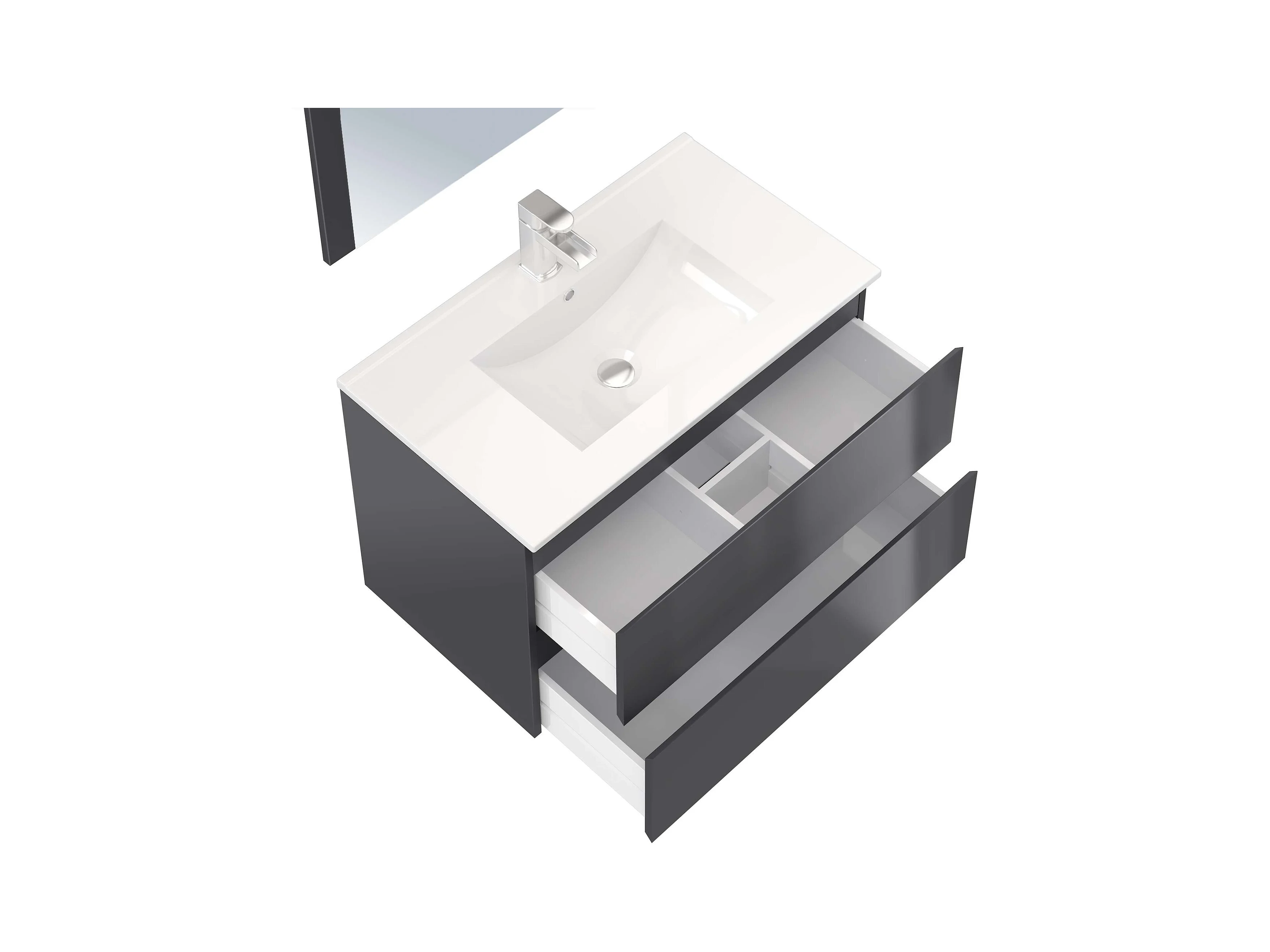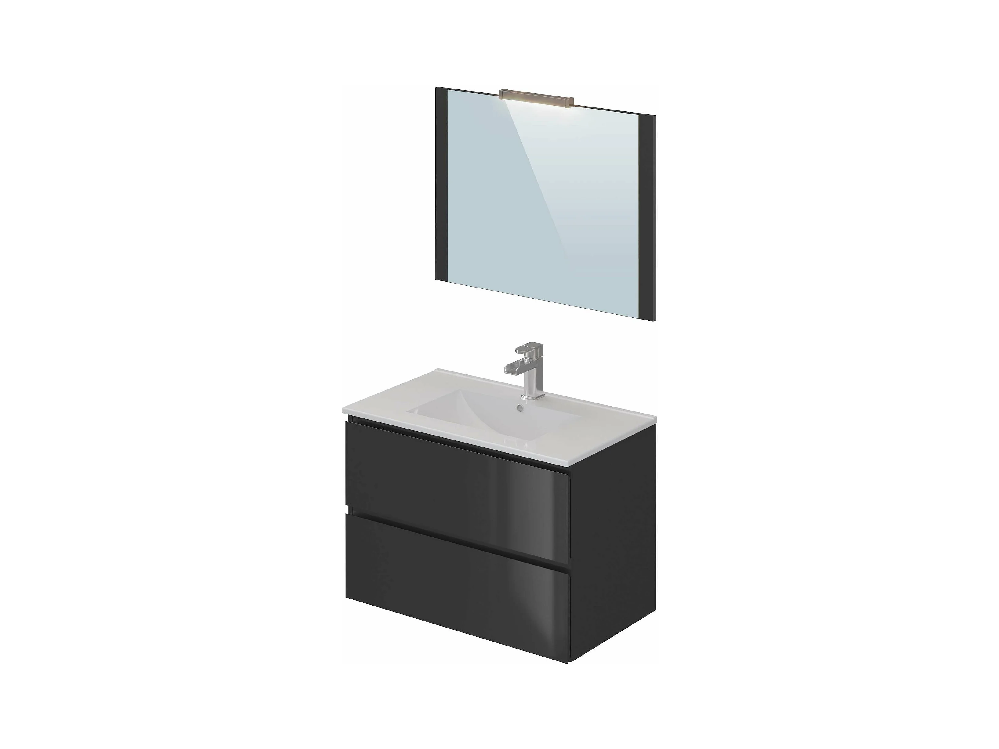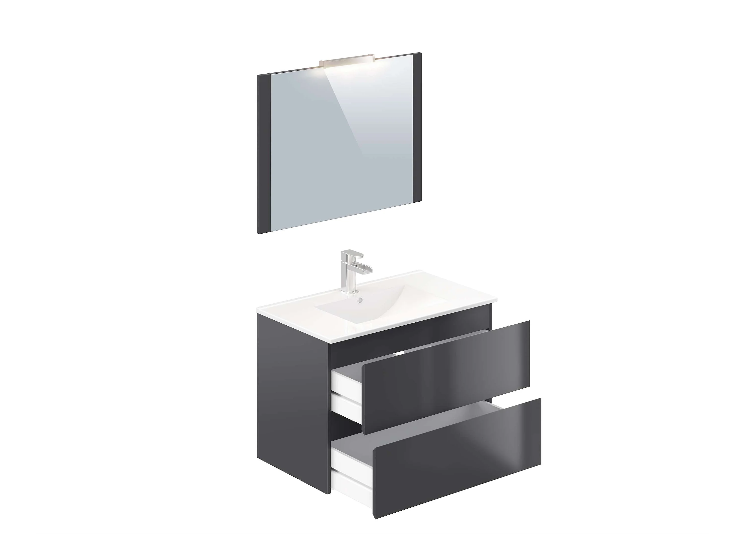 Meuble de salle de bain NELI 2 tiroirs 80 cm anthracite T-BATH Inclus lavabo, miroir et applique LED