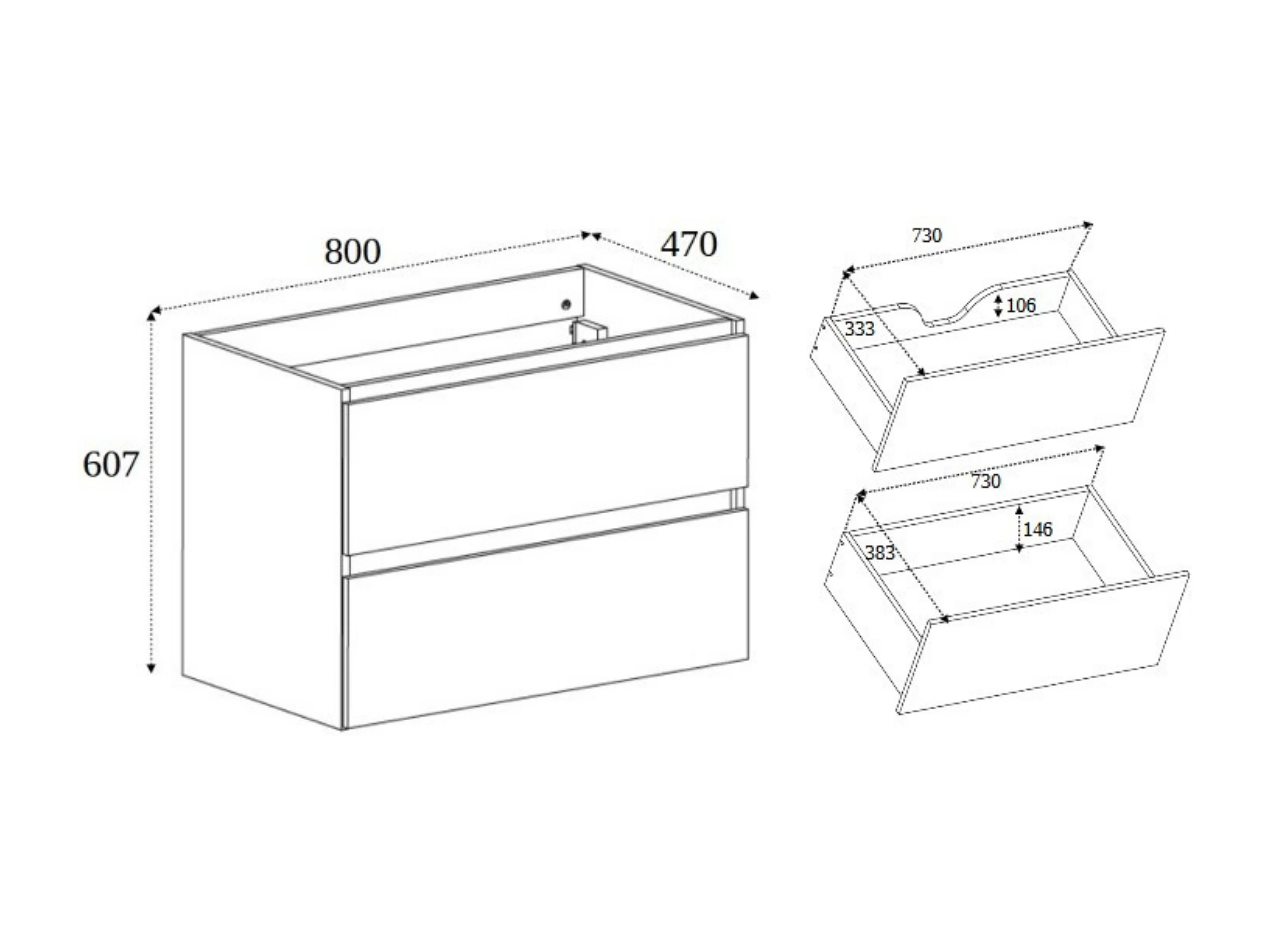 Meuble de salle de bain 80 cm, pieds, Couleur: Chêne Foncé, 80 x 46 x 80,7 cm, sans plan de travail