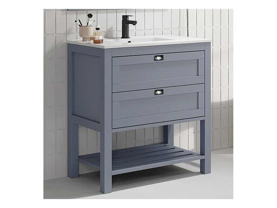 Meuble de salle de bain 80 cm simple vasque - pin massif - 2 tiroirs - sans miroir - PYLA - bleu