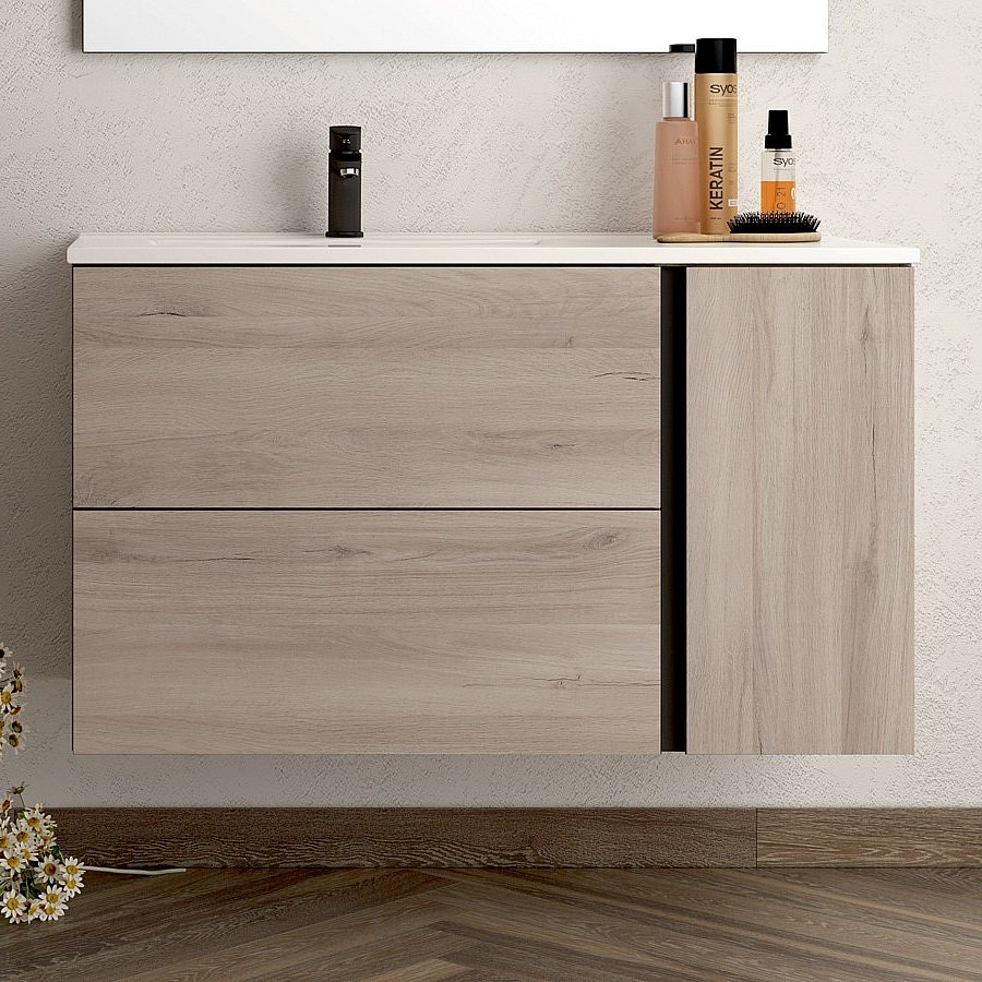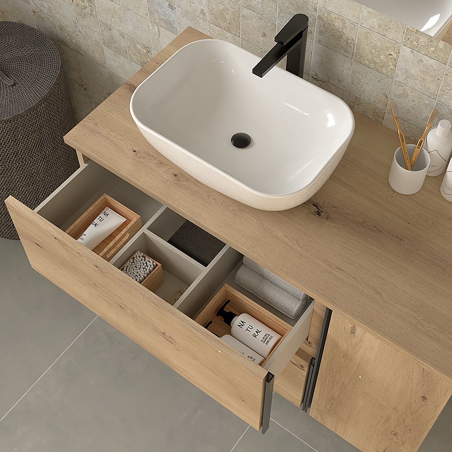Meuble de salle de bain 80 cm vasque déportée - 2 tiroirs - PRADO - oak (chêne brut)