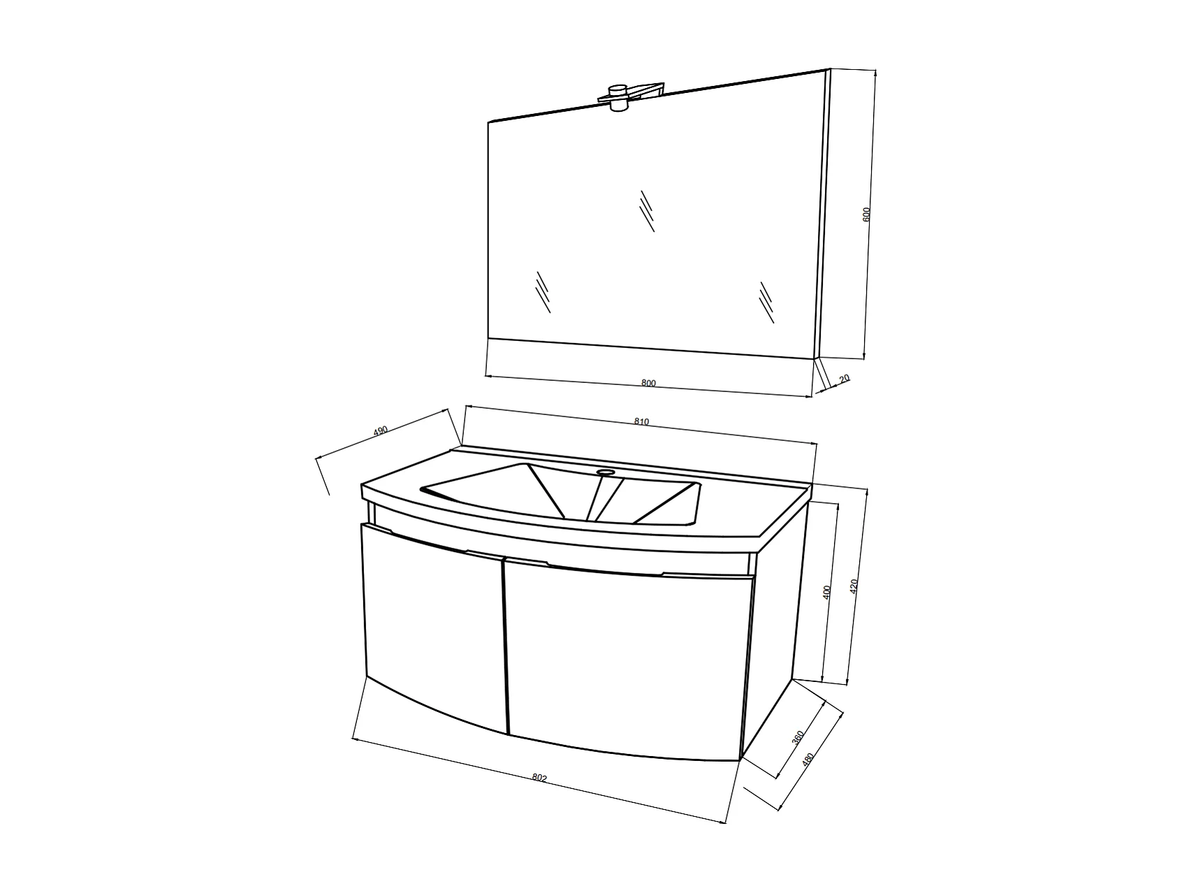 Meuble De Salle De Bain 80Cm Avec Panneau Frontal Arrondi Et Deux Portes En Blanc Brillant | Garda