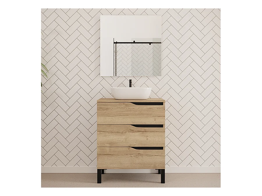 Meuble de salle de bain 80cm avec plateau et vasque à poser zeus - 3 tiroirs - madera miel (chêne clair) - MATA