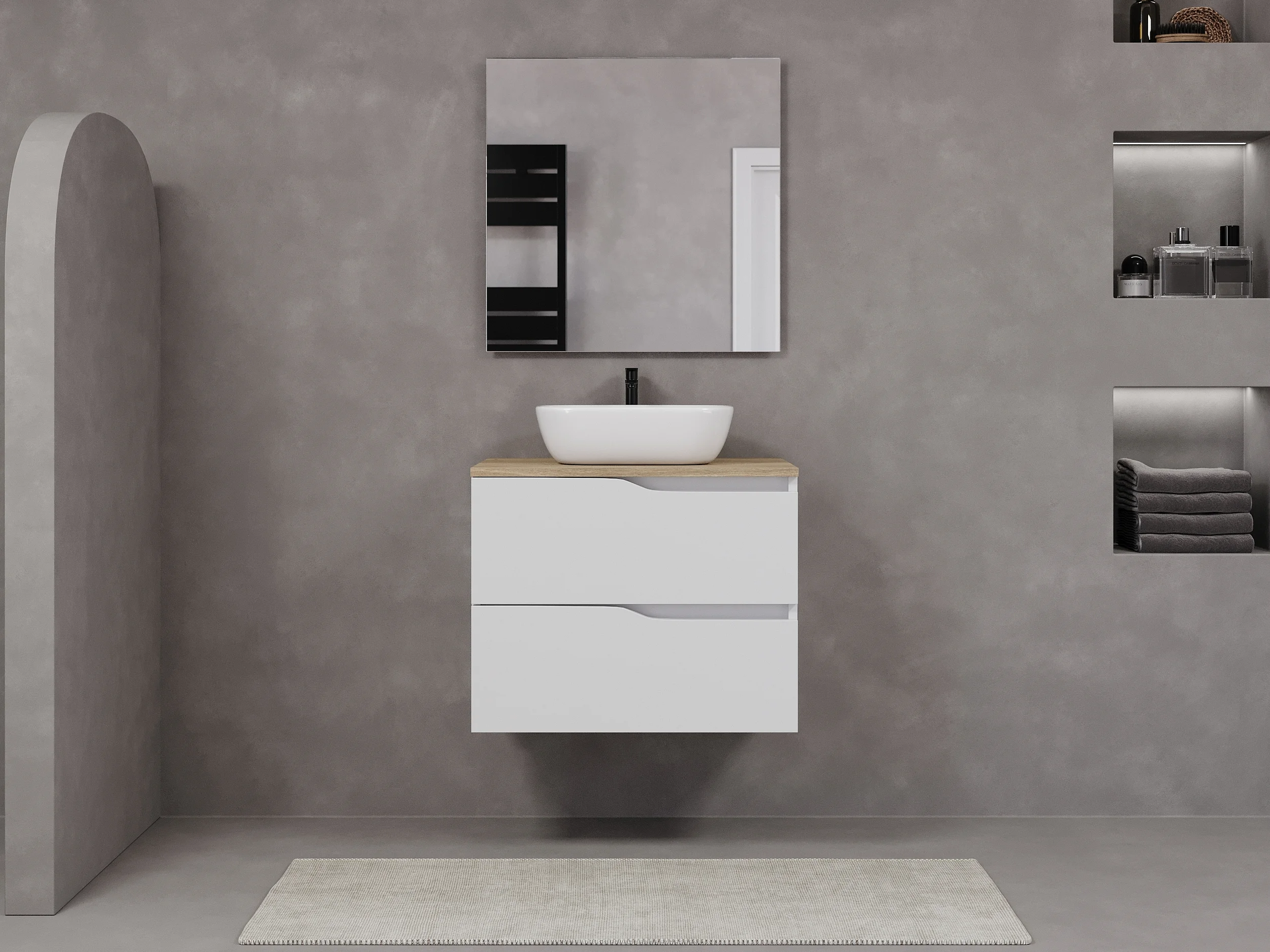 Meuble de salle de bain 80cm avec plateau miel et vasque à poser zeus - 2 tiroirs - sans miroir - blanc - LUNA