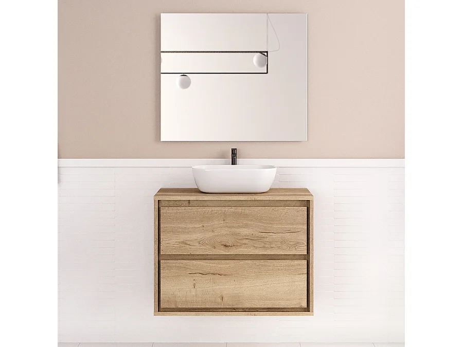 Meuble de salle de bain 80cm avec vasque à poser arrondie - 2 tiroirs - roble sanctuary (chêne clair) - ETIO