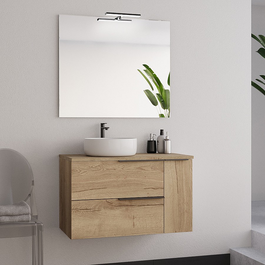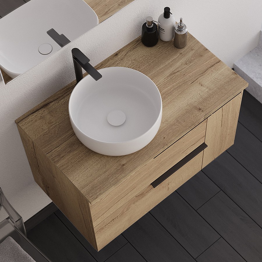 Meuble de salle de bain 80cm avec vasque à poser déportée arrondie - roble (chêne clair) - KING