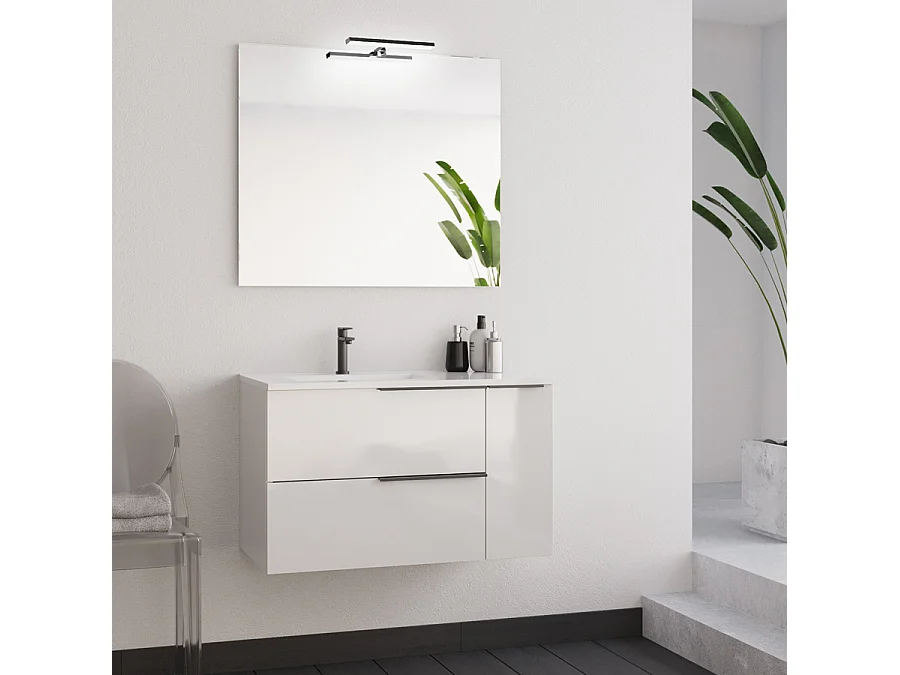 Meuble de salle de bain 80cm avec vasque déportée et miroir avec applique - blanc - KING