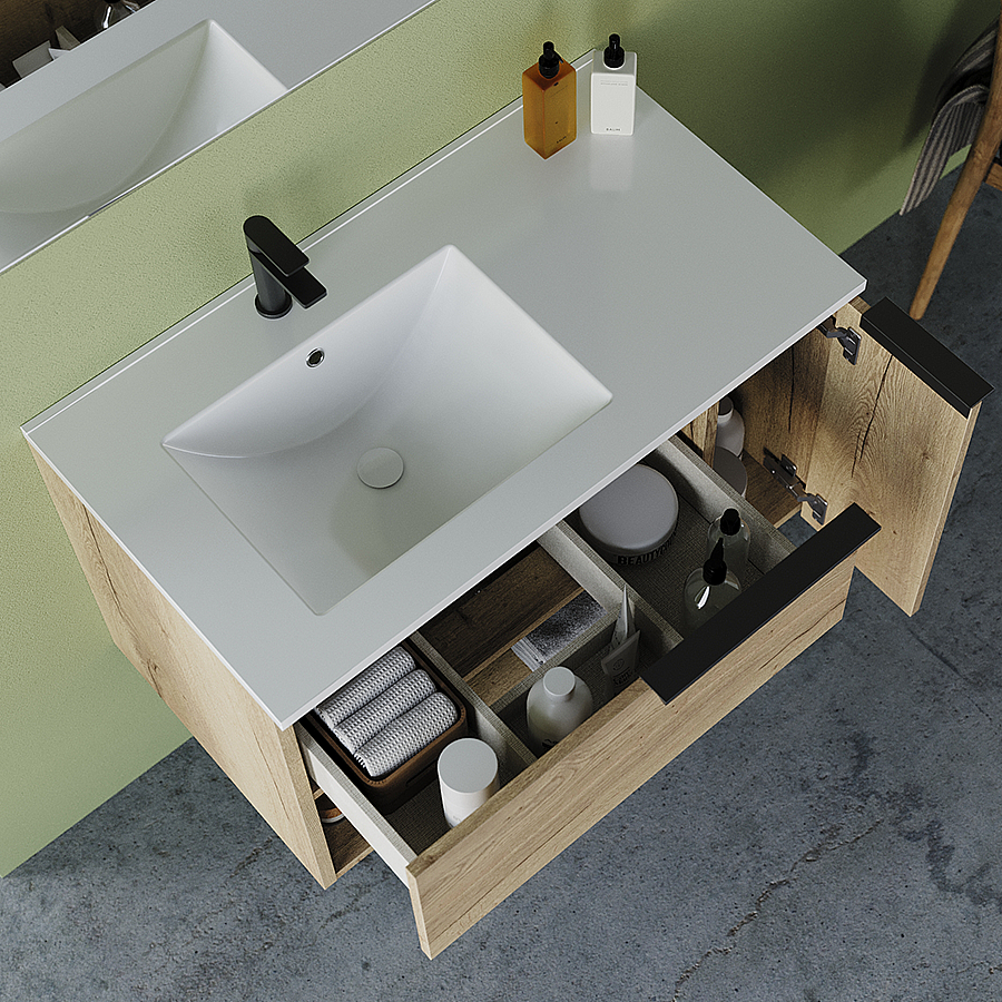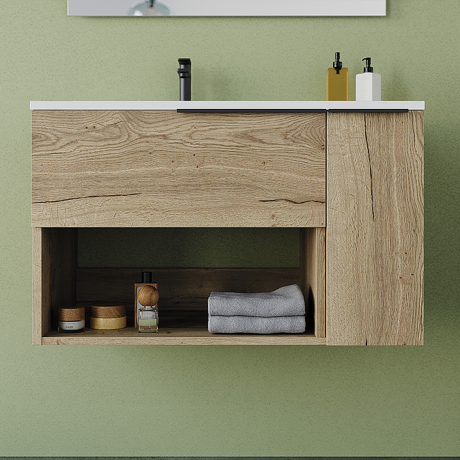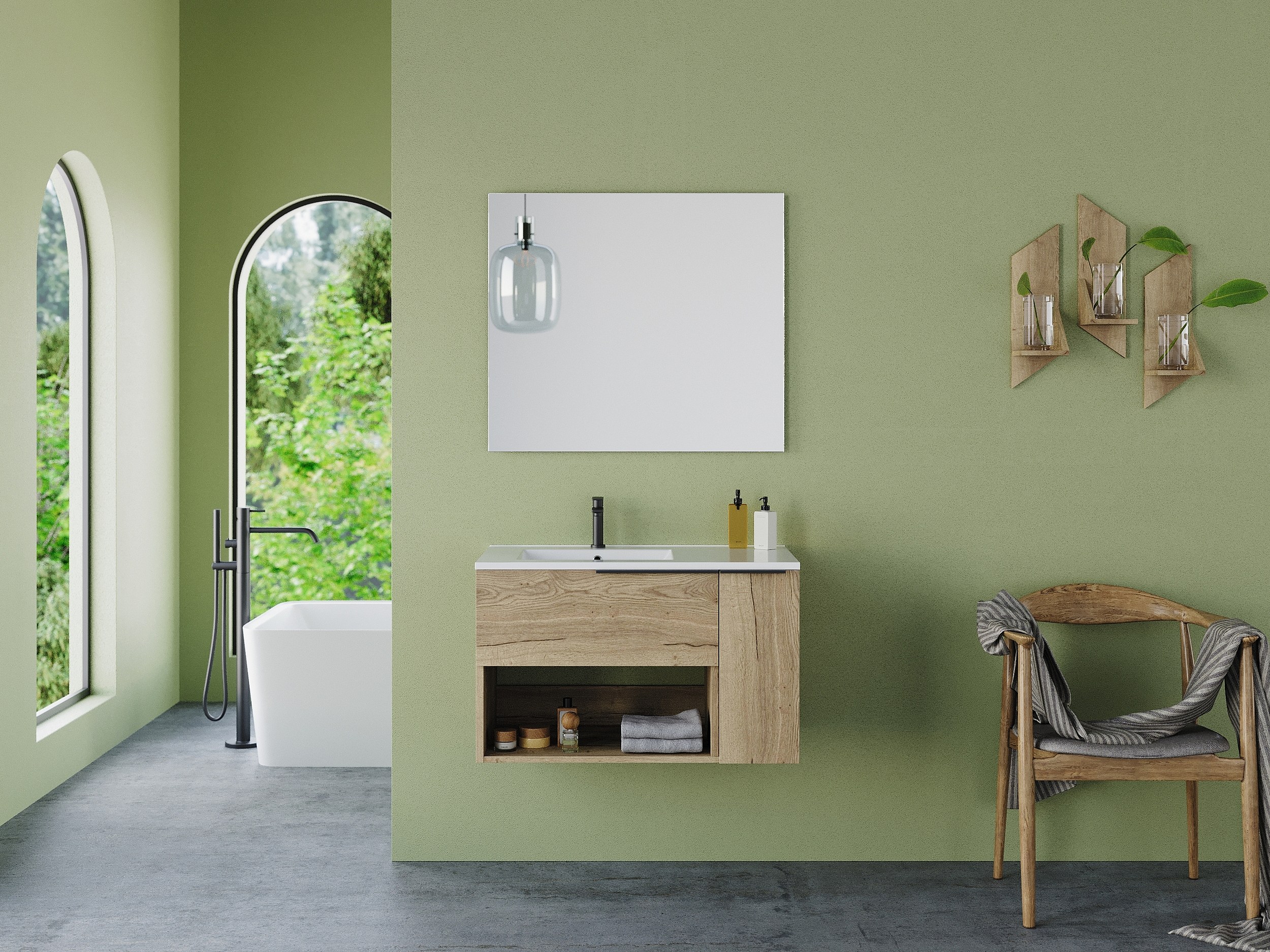 Meuble de salle de bain 80cm avec vasque déportée - roble (chêne clair) - MORENA