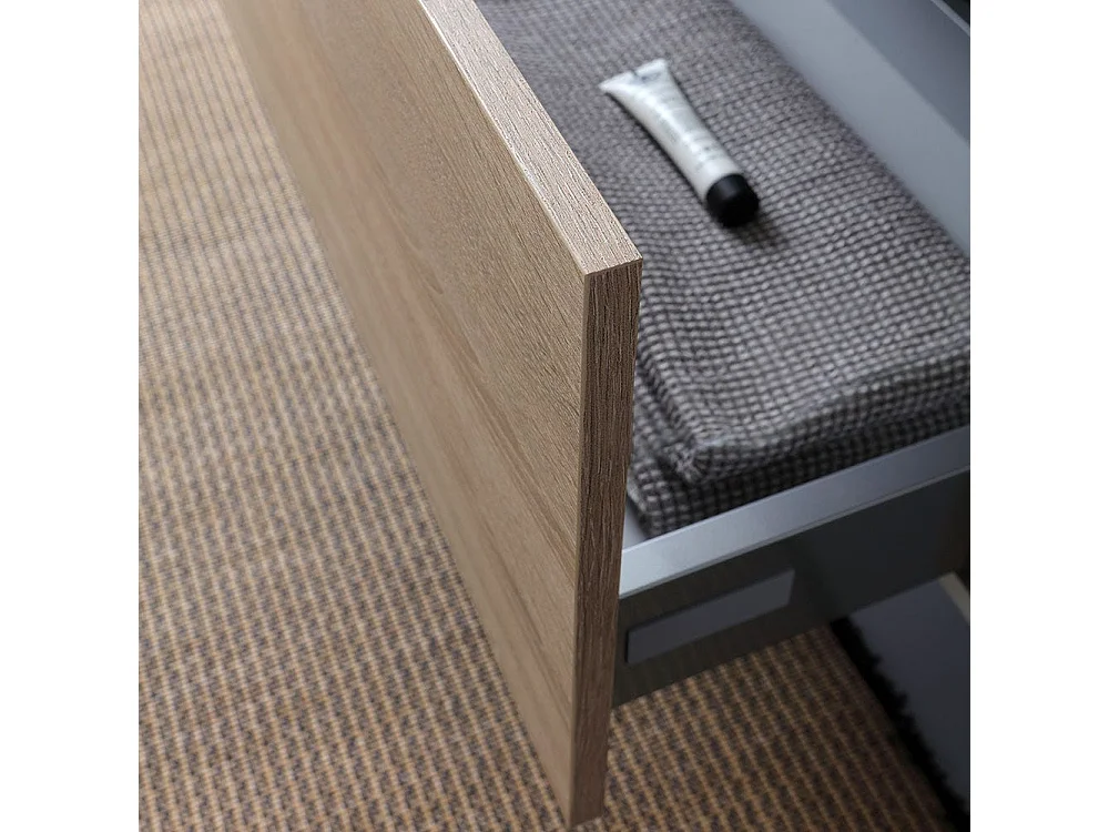 Meuble De Salle De Bain 80Cm Chêne Well Avec Lavabo Noir Et Miroir Avec Bords Polis | Sole