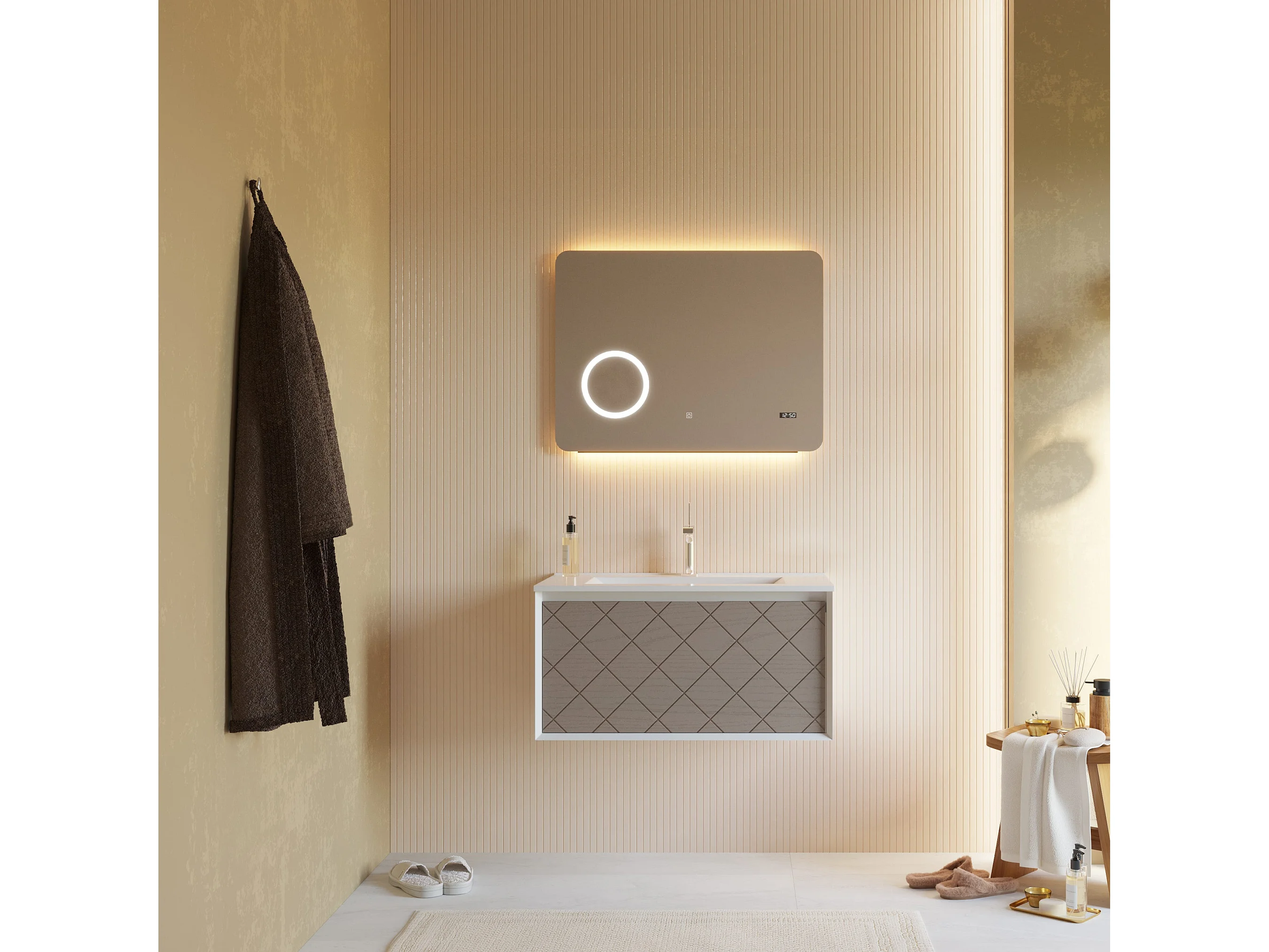 Meuble De Salle De Bain 80Cm Frêne Gris Et Miroir Led Tactile 80X60 | Miami