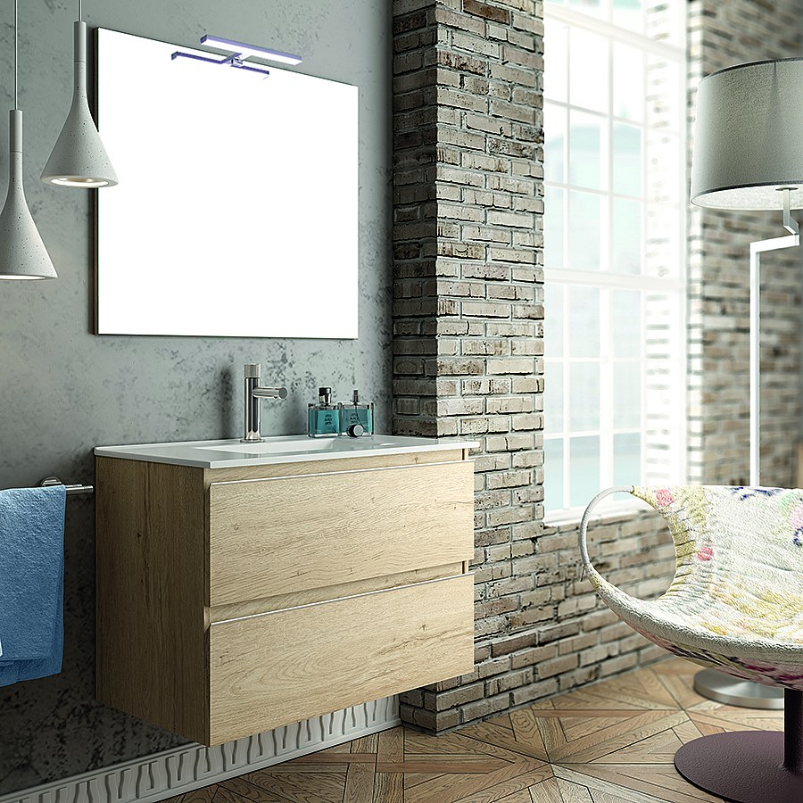 Meuble de salle de bain 80cm simple vasque - 2 tiroirs - BALEA - bambou (chêne clair)