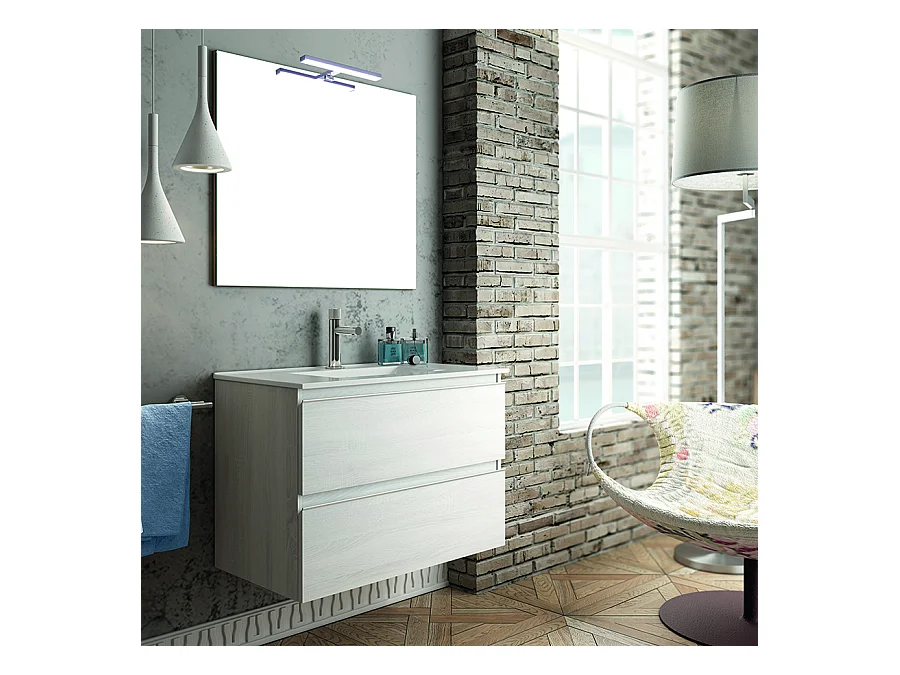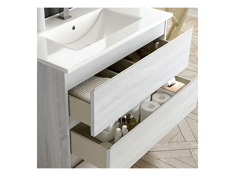 Meuble de salle de bain 80cm simple vasque - 2 tiroirs - BALEA - hibernian (bois blanchi)
