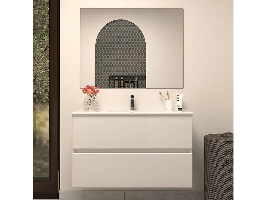 Meuble de salle de bain 80cm simple vasque - 2 tiroirs - blanc - IDA