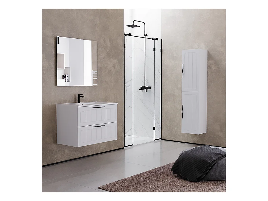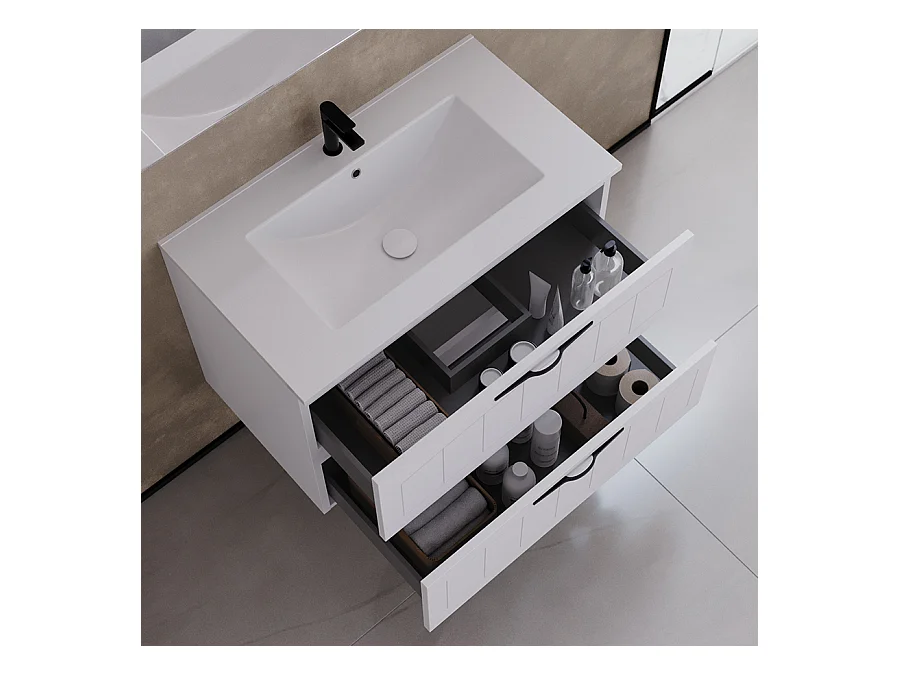 Meuble de salle de bain 80cm simple vasque - 2 tiroirs - sans miroir - blanc - PIA