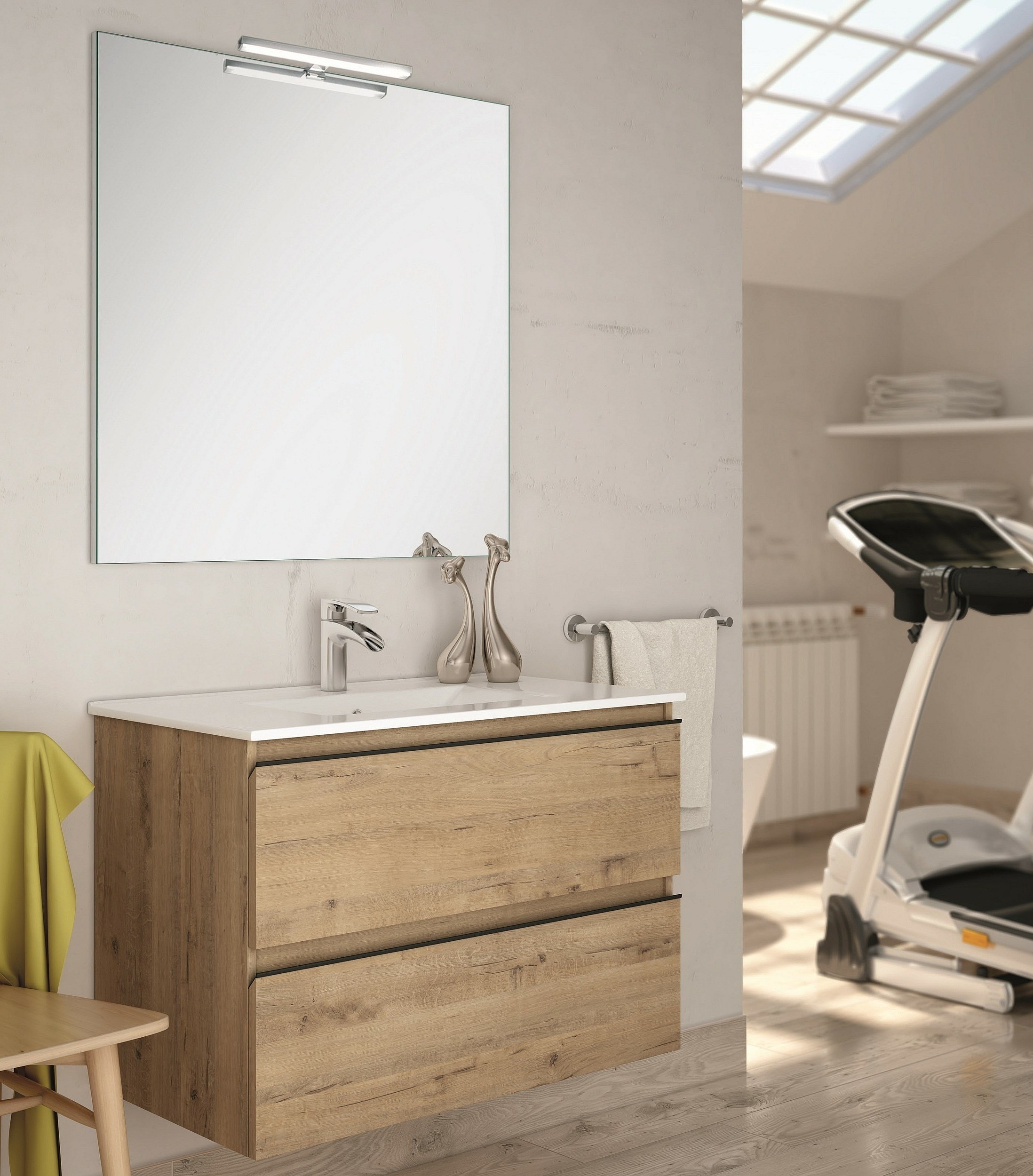 Meuble de salle de bain 80cm simple vasque - 2 tiroirs - TOURA - roble (chêne clair)