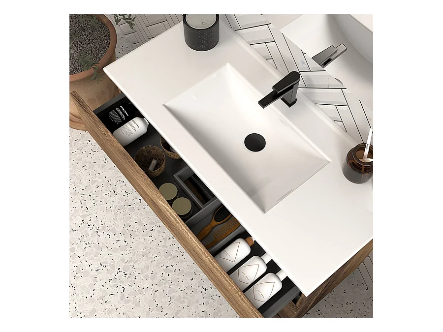 Meuble de salle de bain 80cm simple vasque - 3 tiroirs - tabaco (bois foncé) - MATA