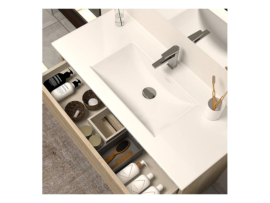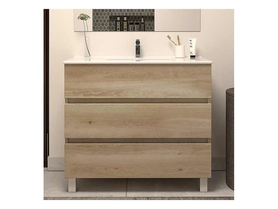 Meuble de salle de bain 80cm simple vasque - sans miroir - 3 tiroirs - nebraska (bois clair) - MAYOR