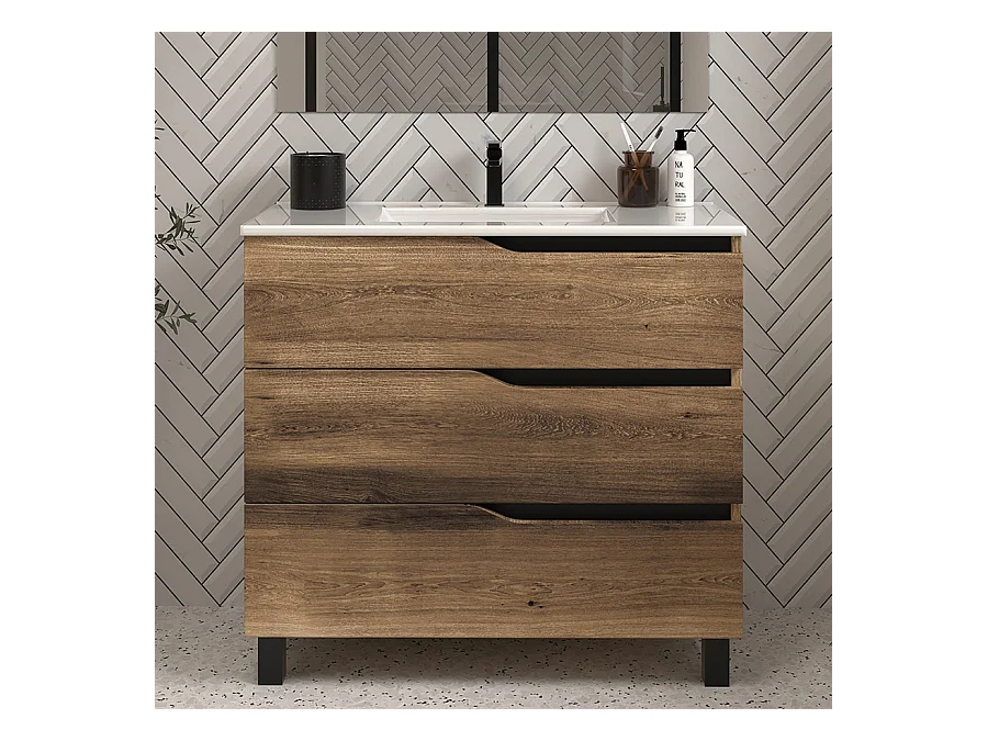 Meuble de salle de bain 80cm simple vasque - sans miroir - 3 tiroirs - tabaco (bois foncé) - MATA