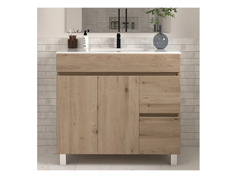 Meuble de salle de bain 80cm simple vasque sur pieds avec portes et tiroirs - cambrian (chêne clair) - HARO