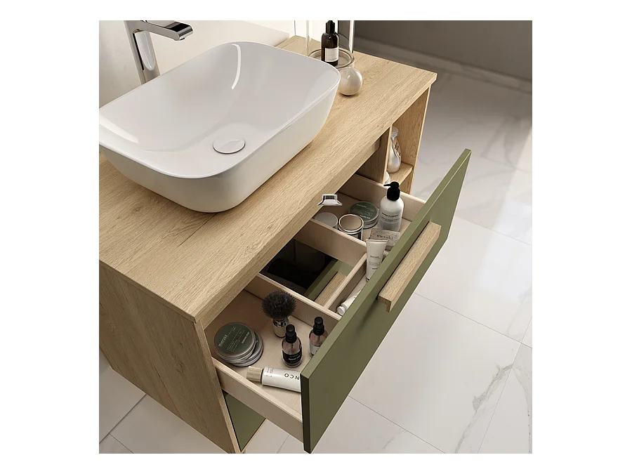 Meuble de salle de bain 80cm vasque déportée - 2 tiroirs - MALIA - blanc