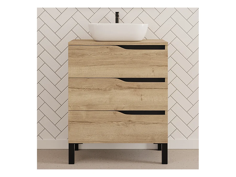 Meuble de salle de bain 90cm avec plateau et vasque à poser zeus - 3 tiroirs - sans miroir - madera miel (chêne clair) - MATA