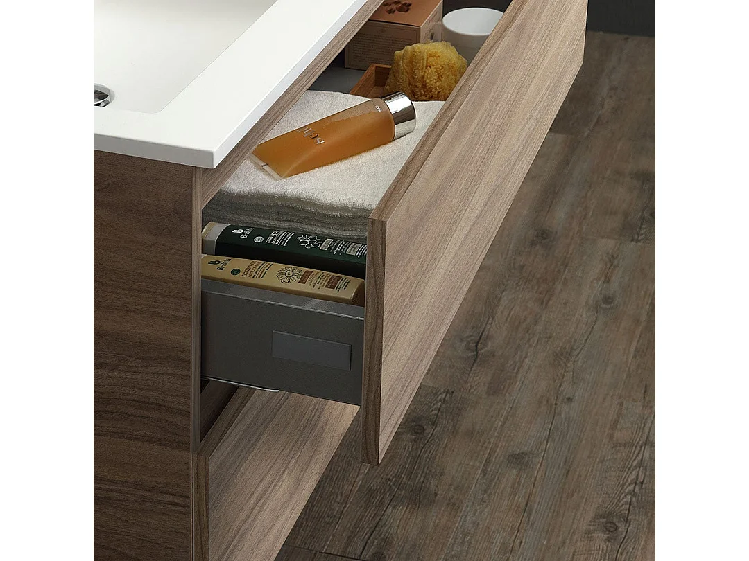 Meuble De Salle De Bain 90Cm En Chêne Avec Vasque Asymétrique Et Miroir Led | Valentina