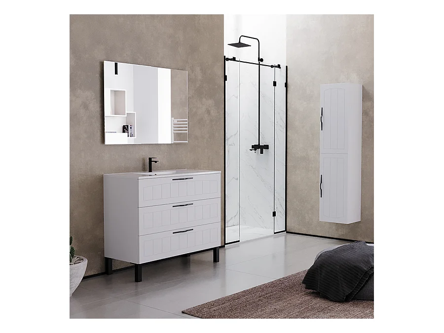 Meuble de salle de bain 90cm simple vasque - 3 tiroirs - blanc - CALA