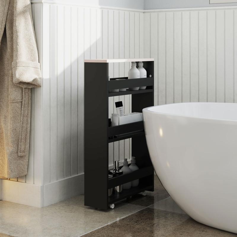 Meuble de salle de bain à roulettes LINDA Aspect bois et noir