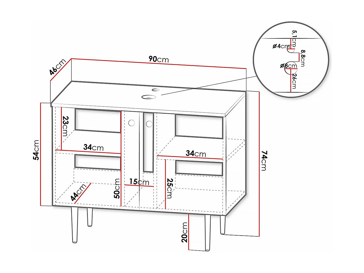 Meuble de salle de bain "Abires" - 90 x 46 x 74 cm - Blanc