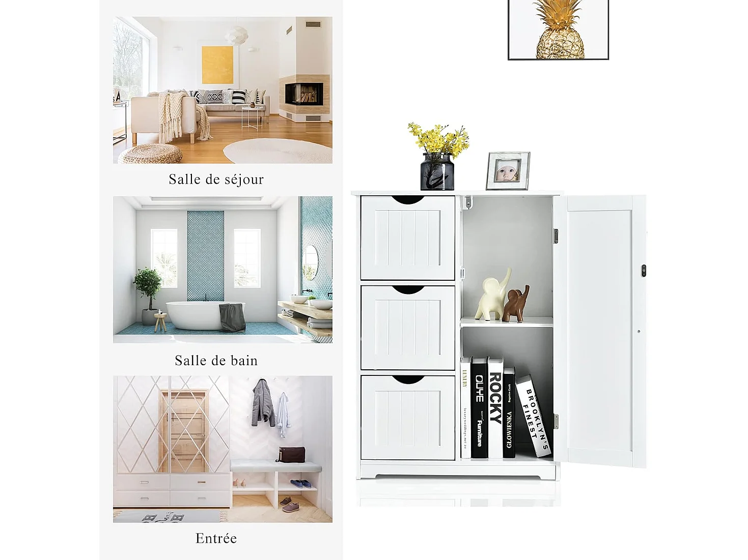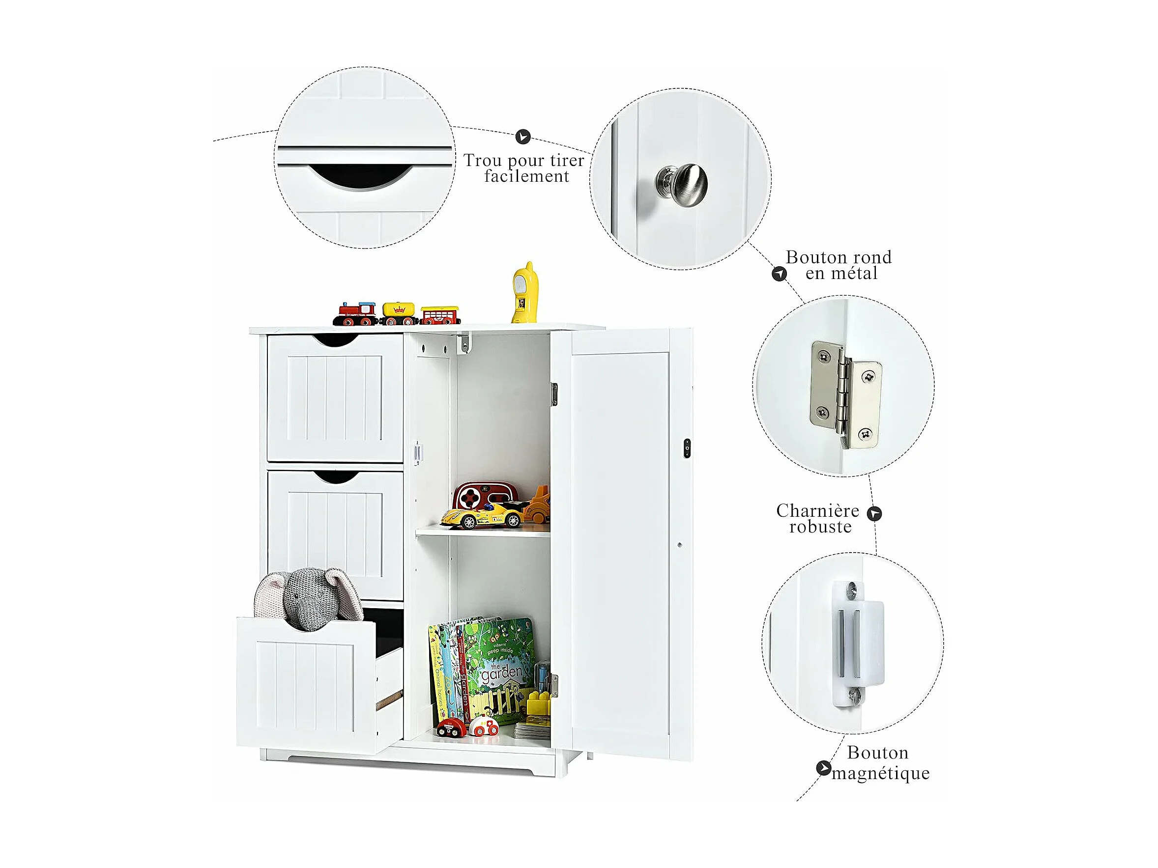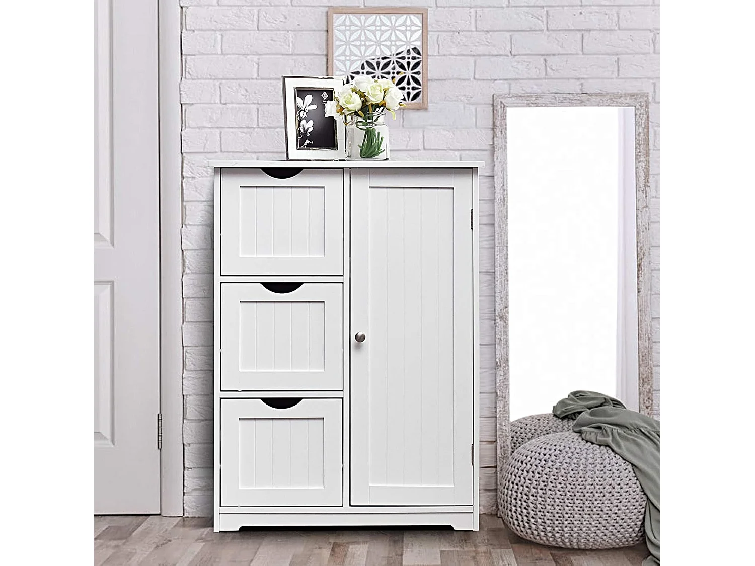 Meuble de Salle de Bain avec 3 Tiroirs, 1 Placard, Rangement Salle de Bain Étagère Réglable pour Salon, Chambre, Entrée, 58x28x81cm(3 Tiroirs - Blanc)
