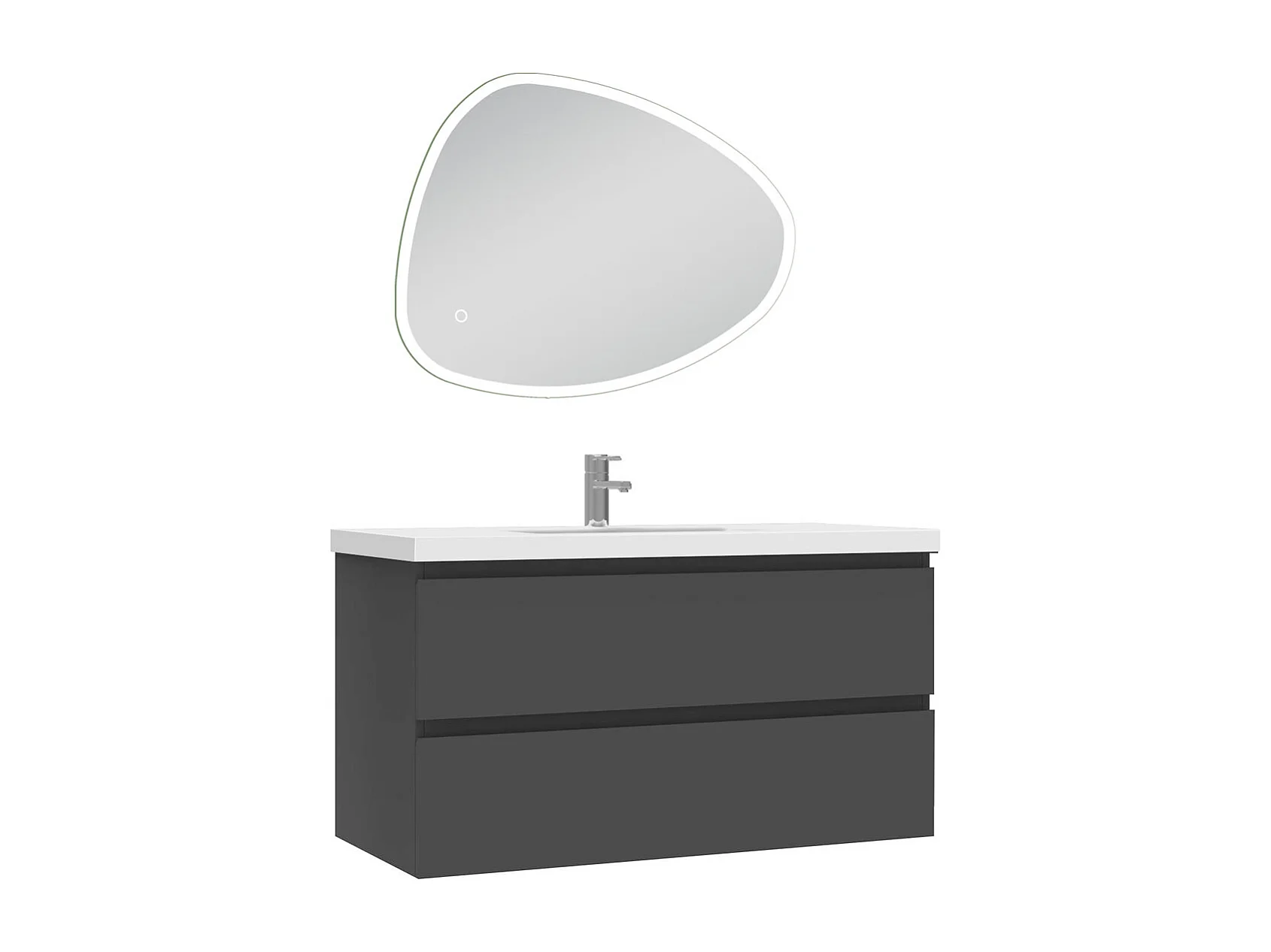 Meuble de salle de bain avec lavabo, 100cm, 2 tiroirs + miroir led Asymétrique multifonctionnel avec antibuée 80x65cm, meuble suspendu anthracite