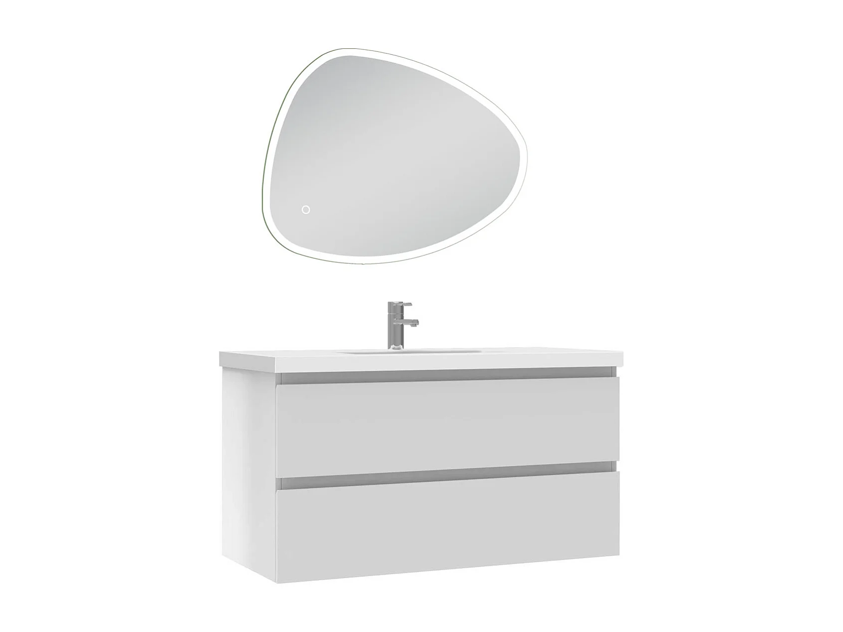 Meuble de salle de bain avec lavabo, 100cm, 2 tiroirs + miroir led Asymétrique multifonctionnel avec antibuée 80x65cm, meuble suspendu blanc