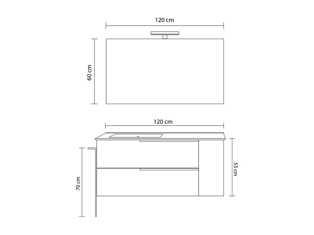 Meuble De Salle De Bain Avec Lavabo À Gauche 120Cm Gris Cendré Effet Bois | New York