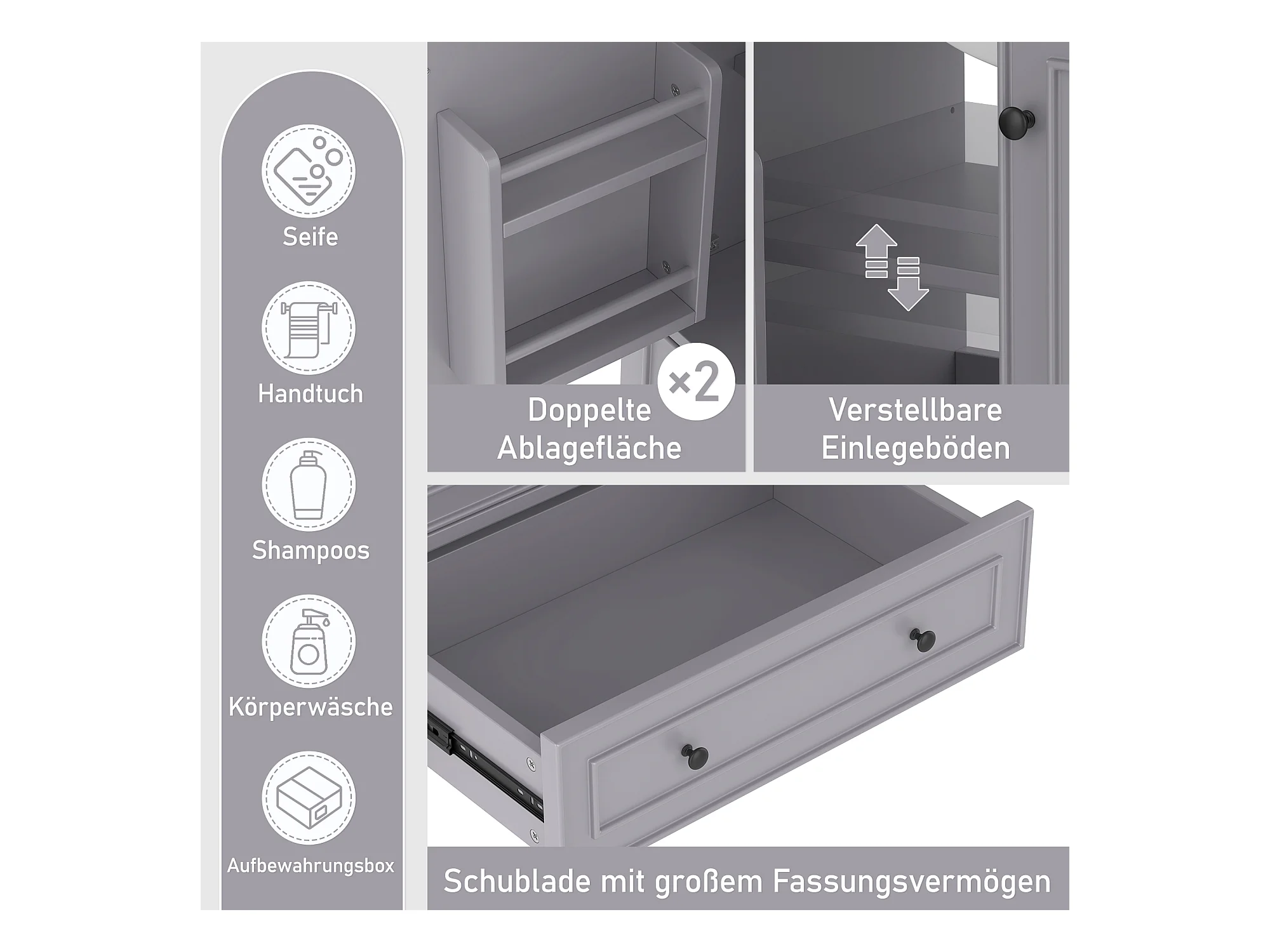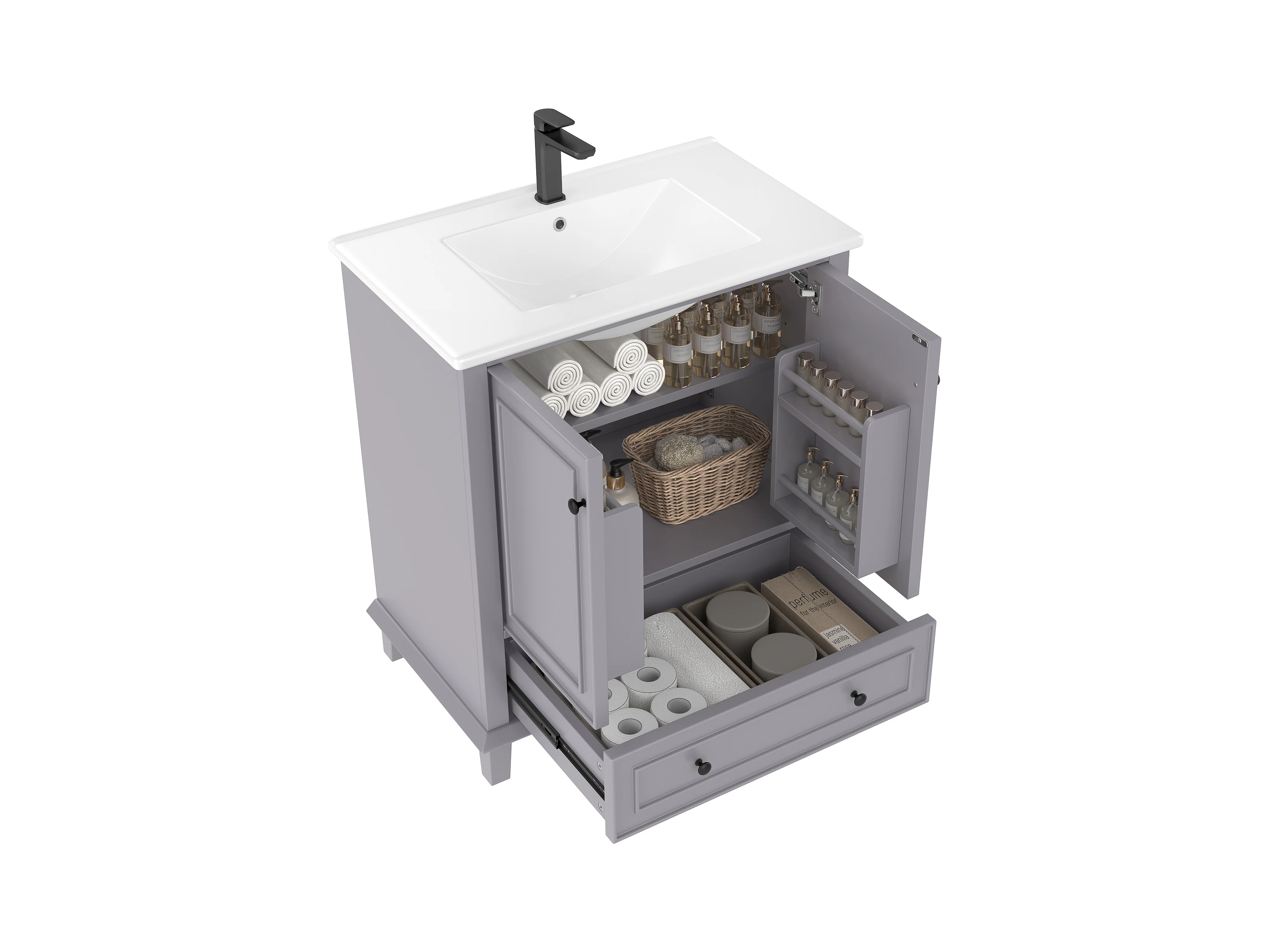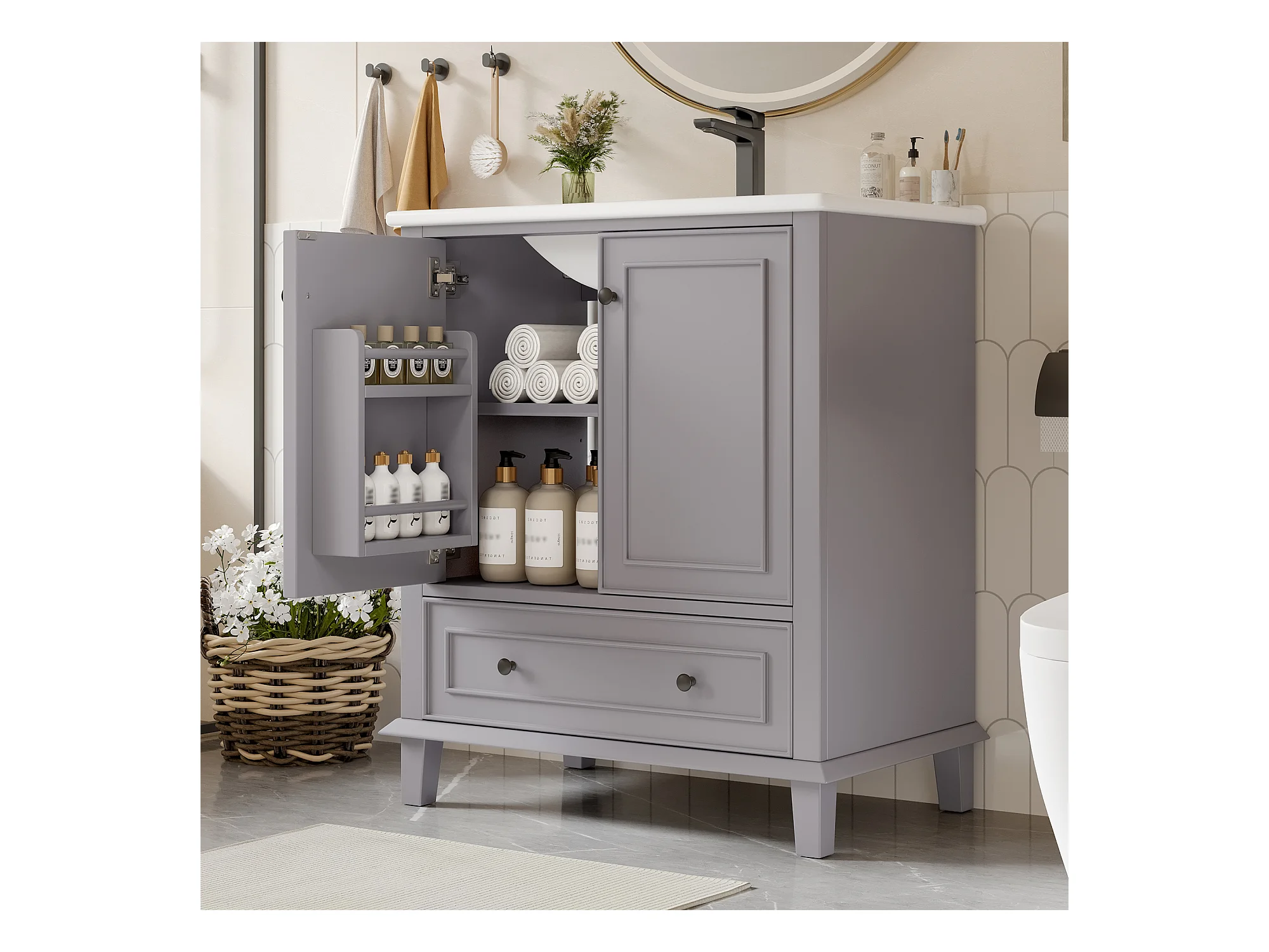 Meuble de salle de bain avec lavabo intégré, pieds en bois massif, MDF laqué, étagères réglables, céramique, gris (76x46x87 cm)