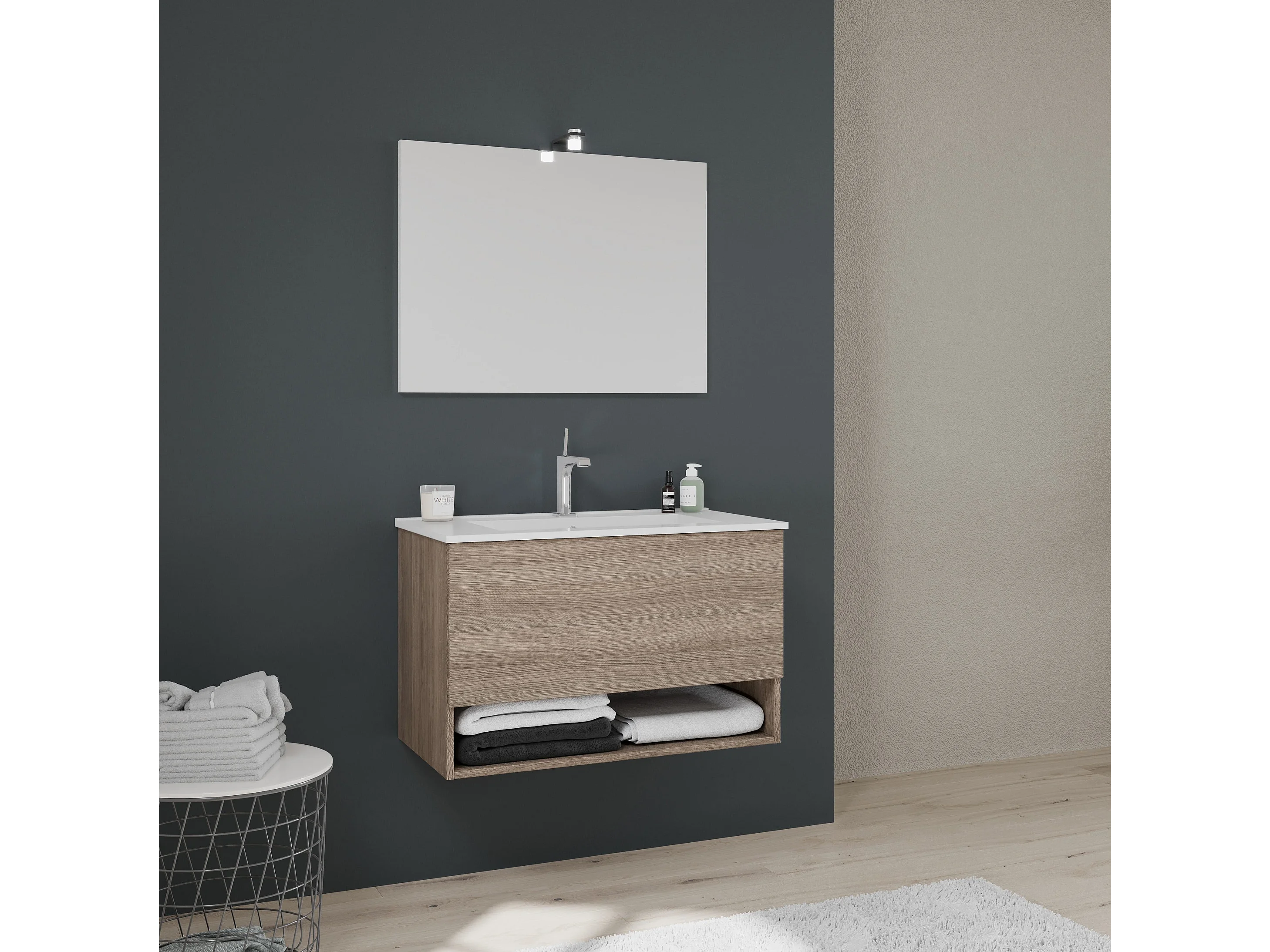 Meuble De Salle De Bain Avec Un Grand Tiroir Et Compartiment Ouvert 80Cm En Chêne Naturel | Venezia