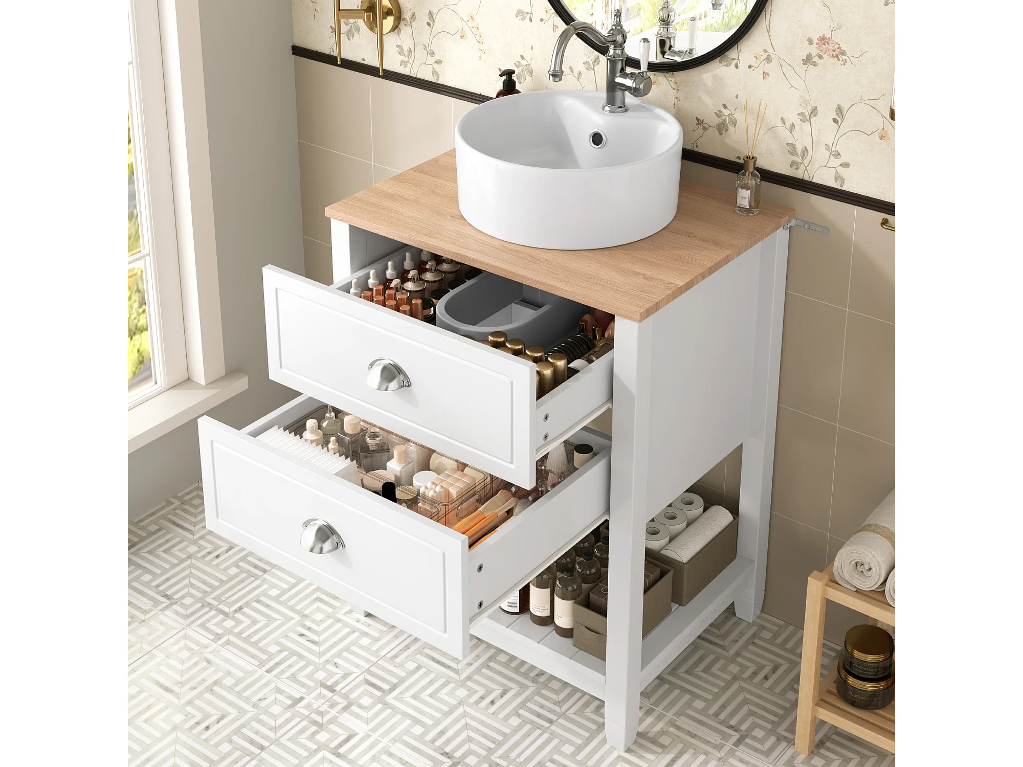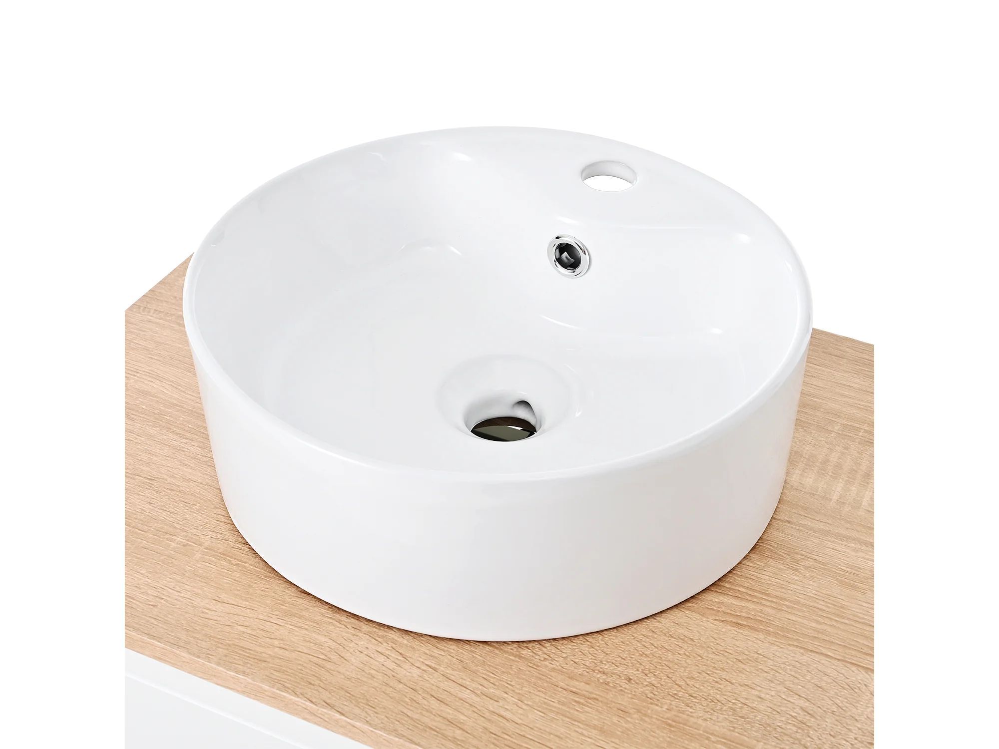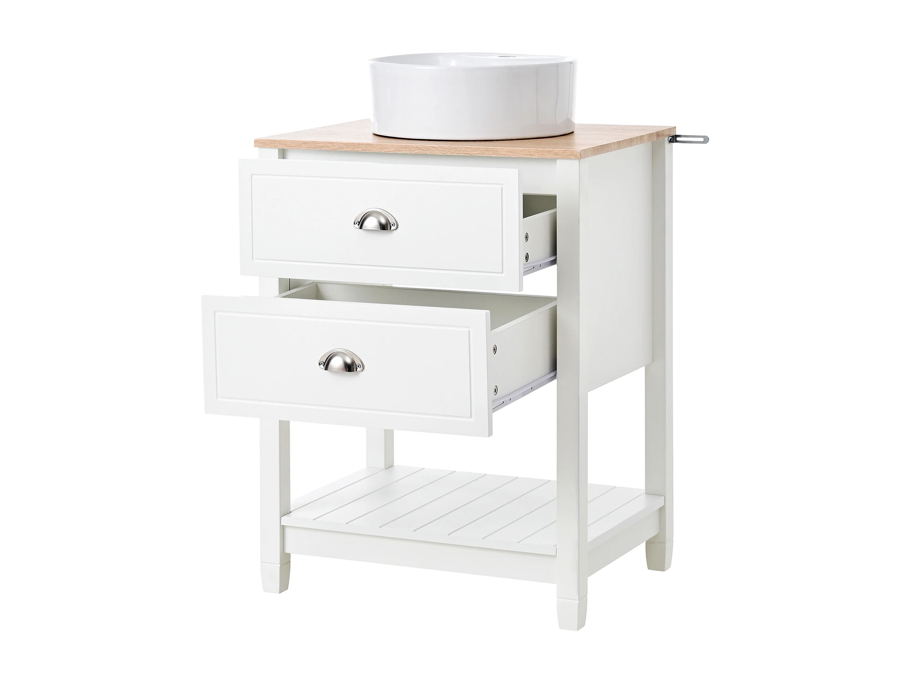 Meuble de salle de bain avec une vasque en céramique - avec 2 tiroirs et 1 compartiment de rangement ouvert - blanc (robinet non inclus)