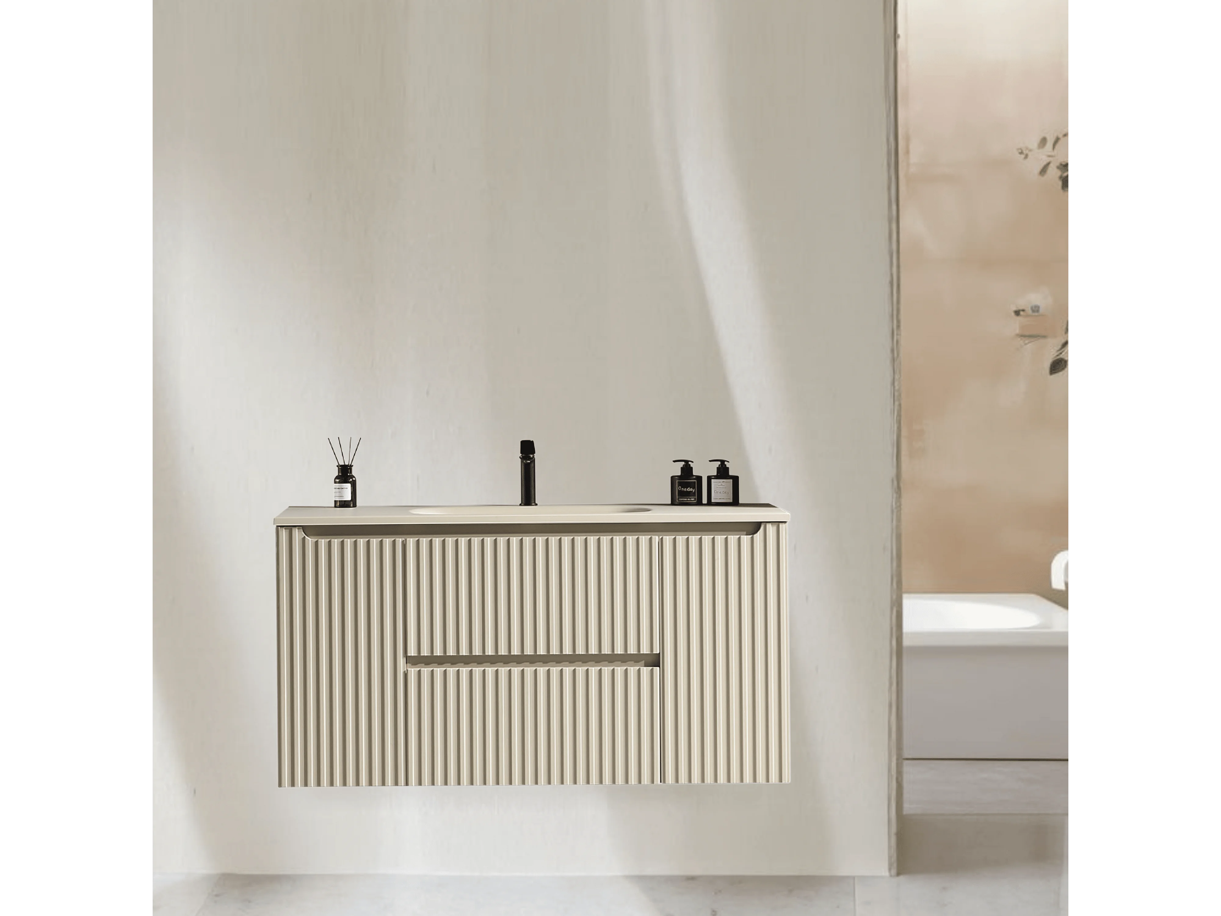 Meuble de salle de bain avec vasque 120 cm amande Aquavenus