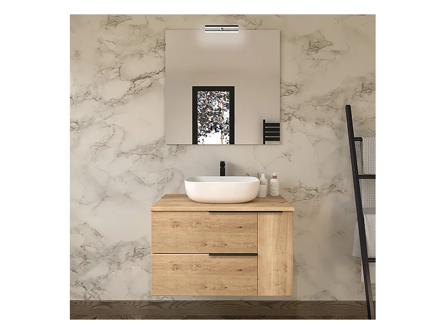Meuble de salle de bain avec vasque à poser arrondie et miroir avec applique KING - Roble (chêne clair) - 80cm
