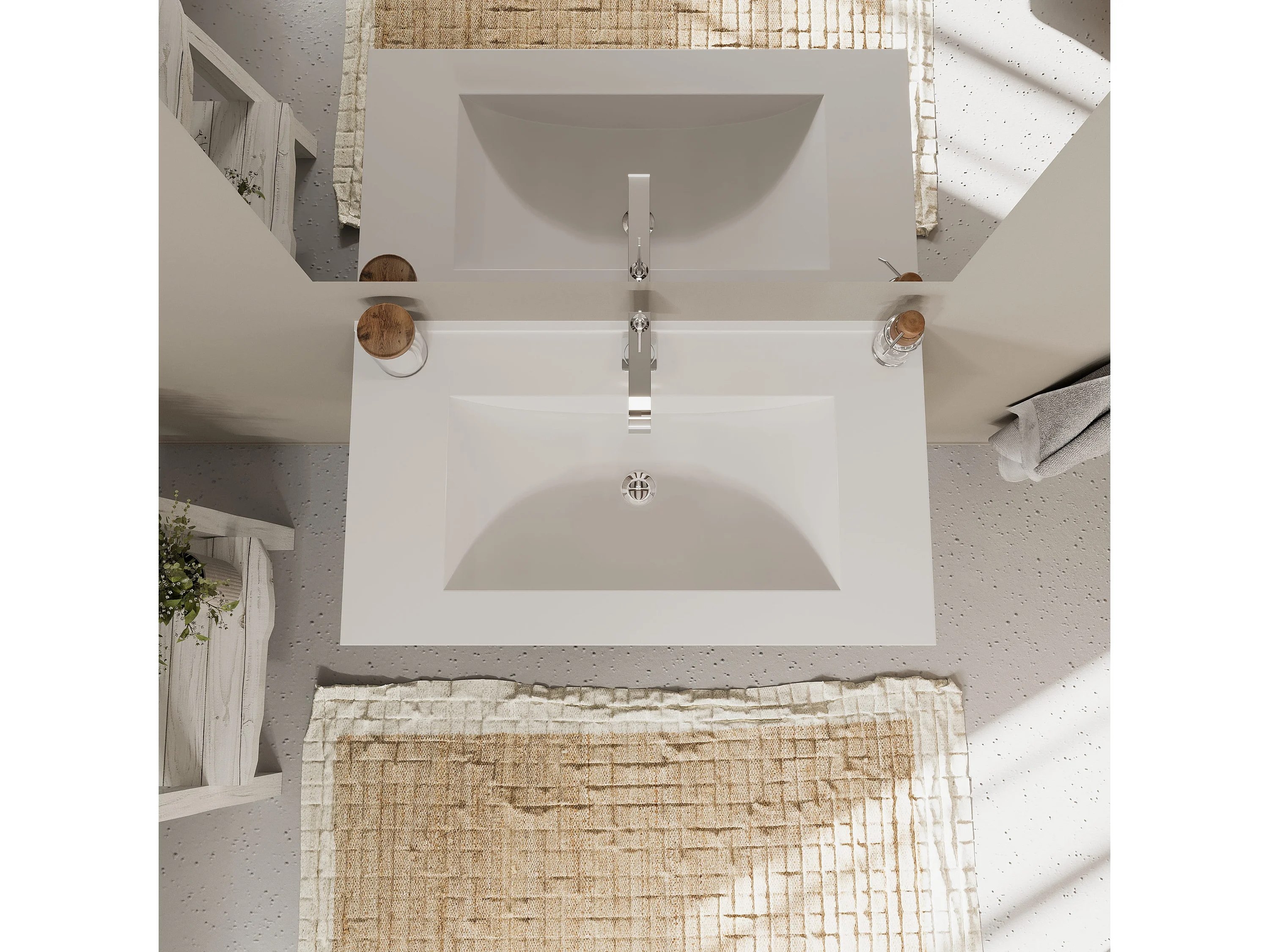 Meuble De Salle De Bain Blanc Mat 80Cm Avec Côtés En Chêne Gris | Magnolia