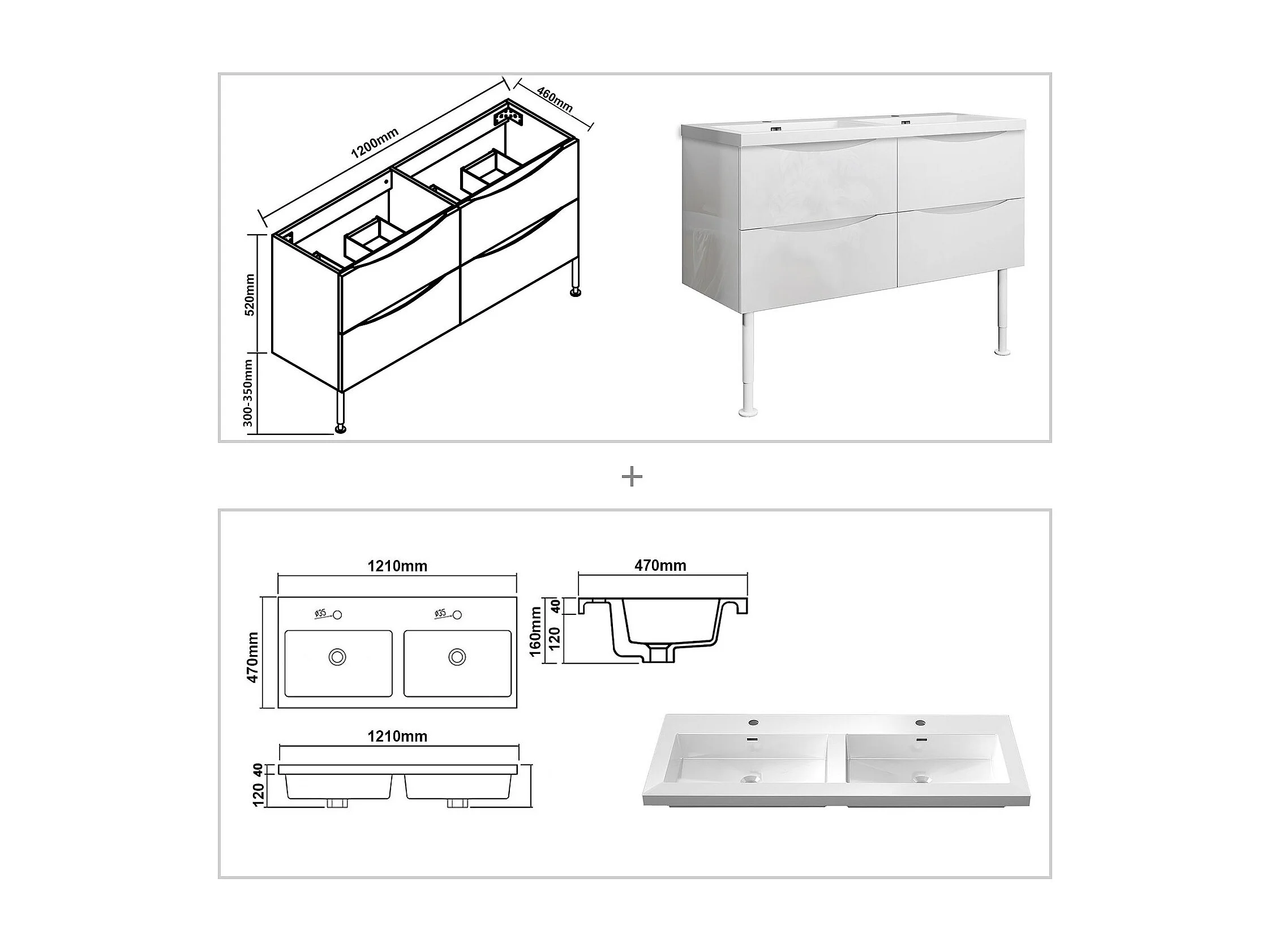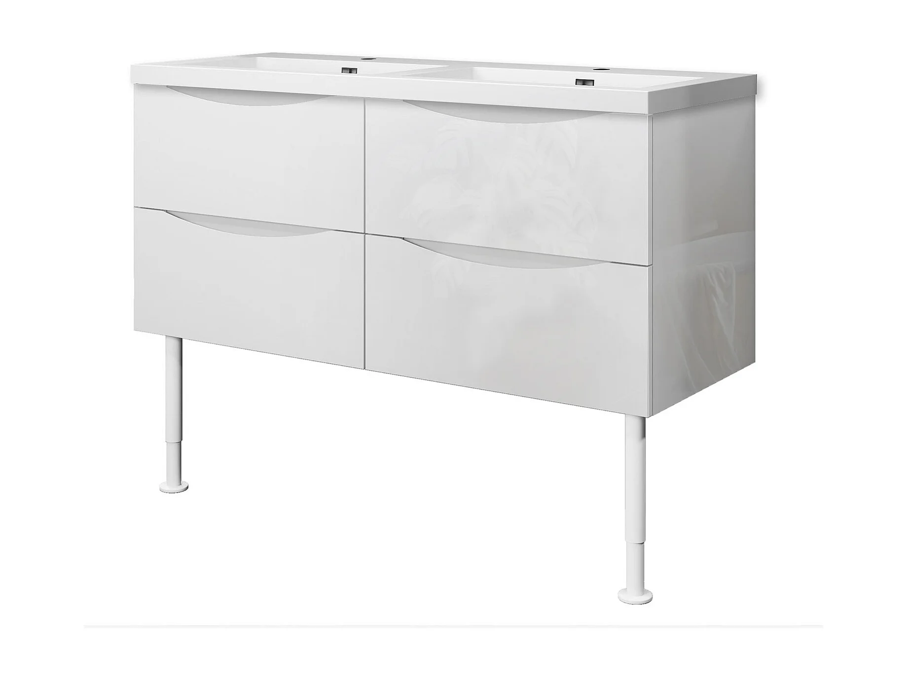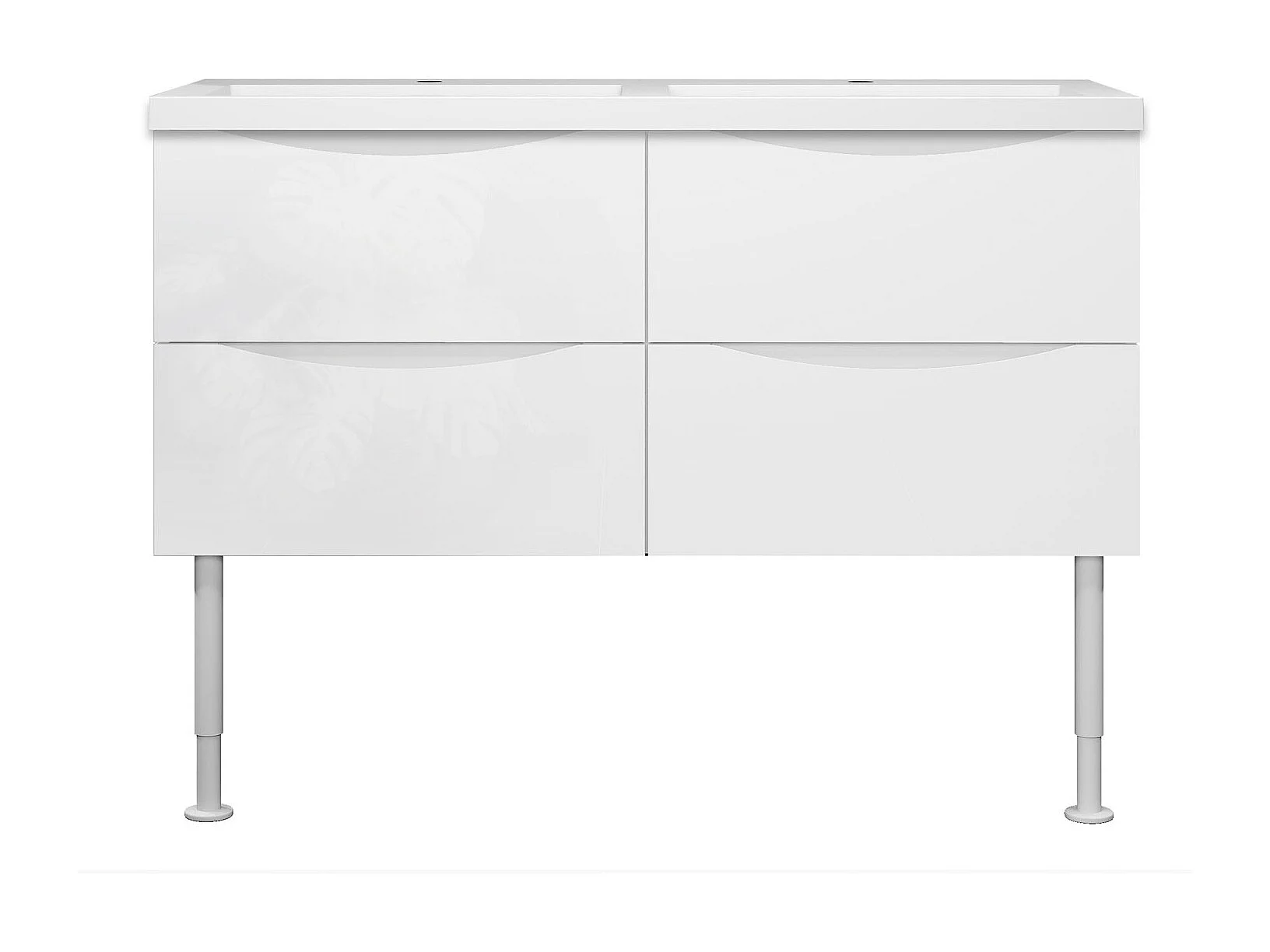 Meuble de salle de bain Brillant, Meuble de sol 120cm avec simple lavabo + 4 tiroirs, Blanc