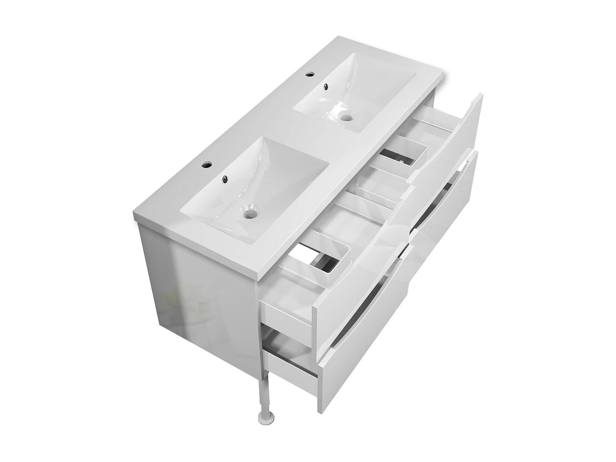 Meuble de salle de bain Brillant, Meuble de sol 120cm avec simple vasque + 4 tiroirs, Blanc