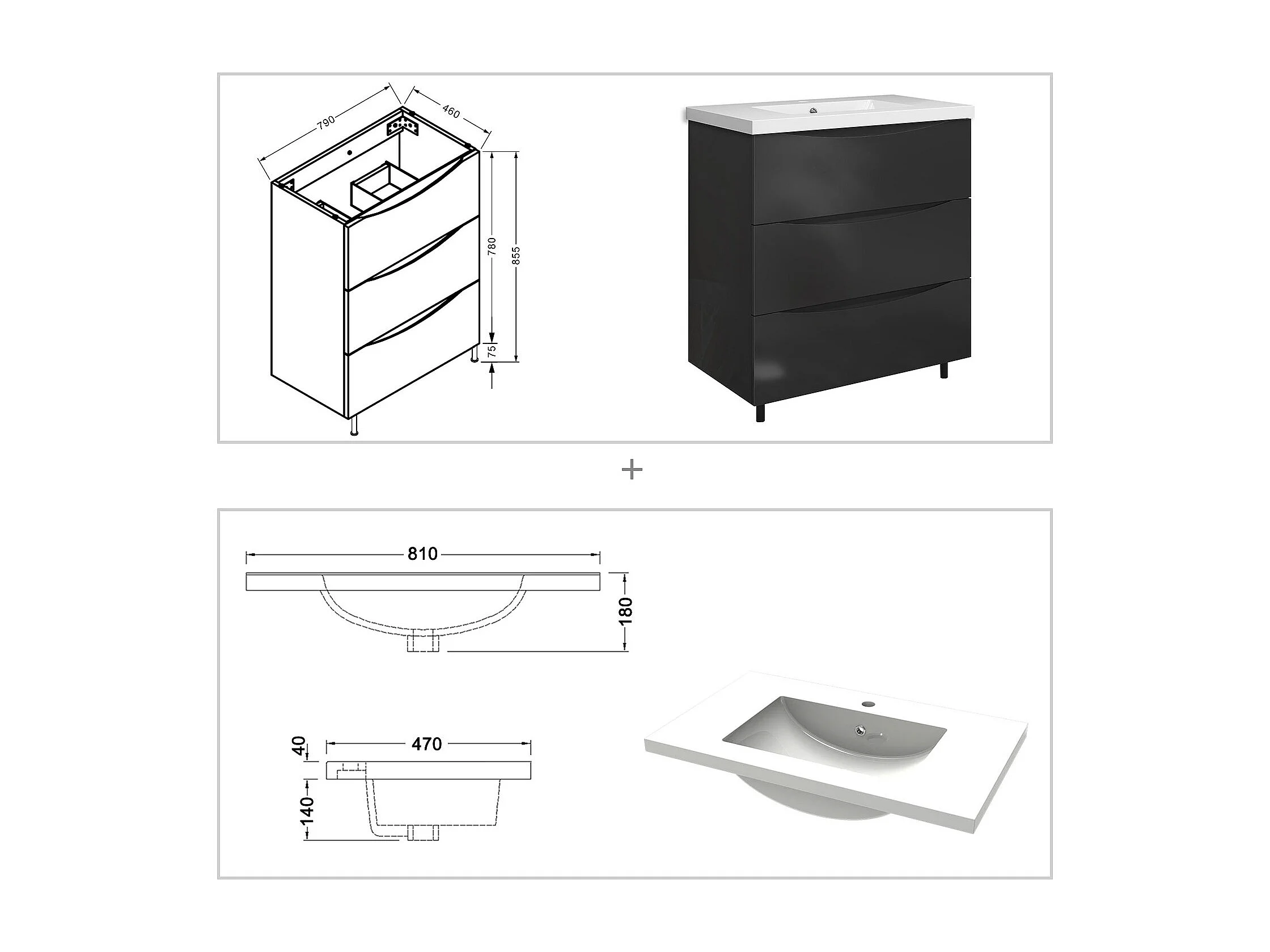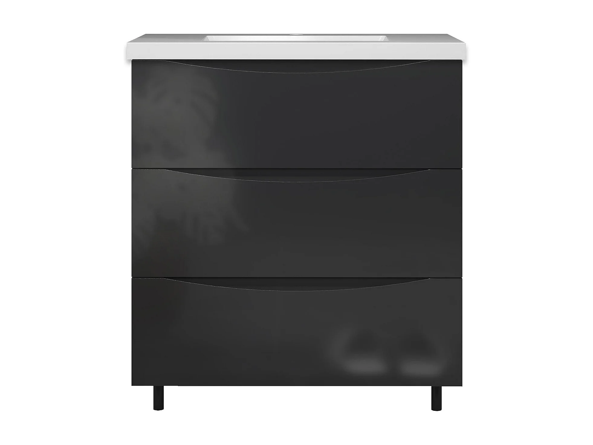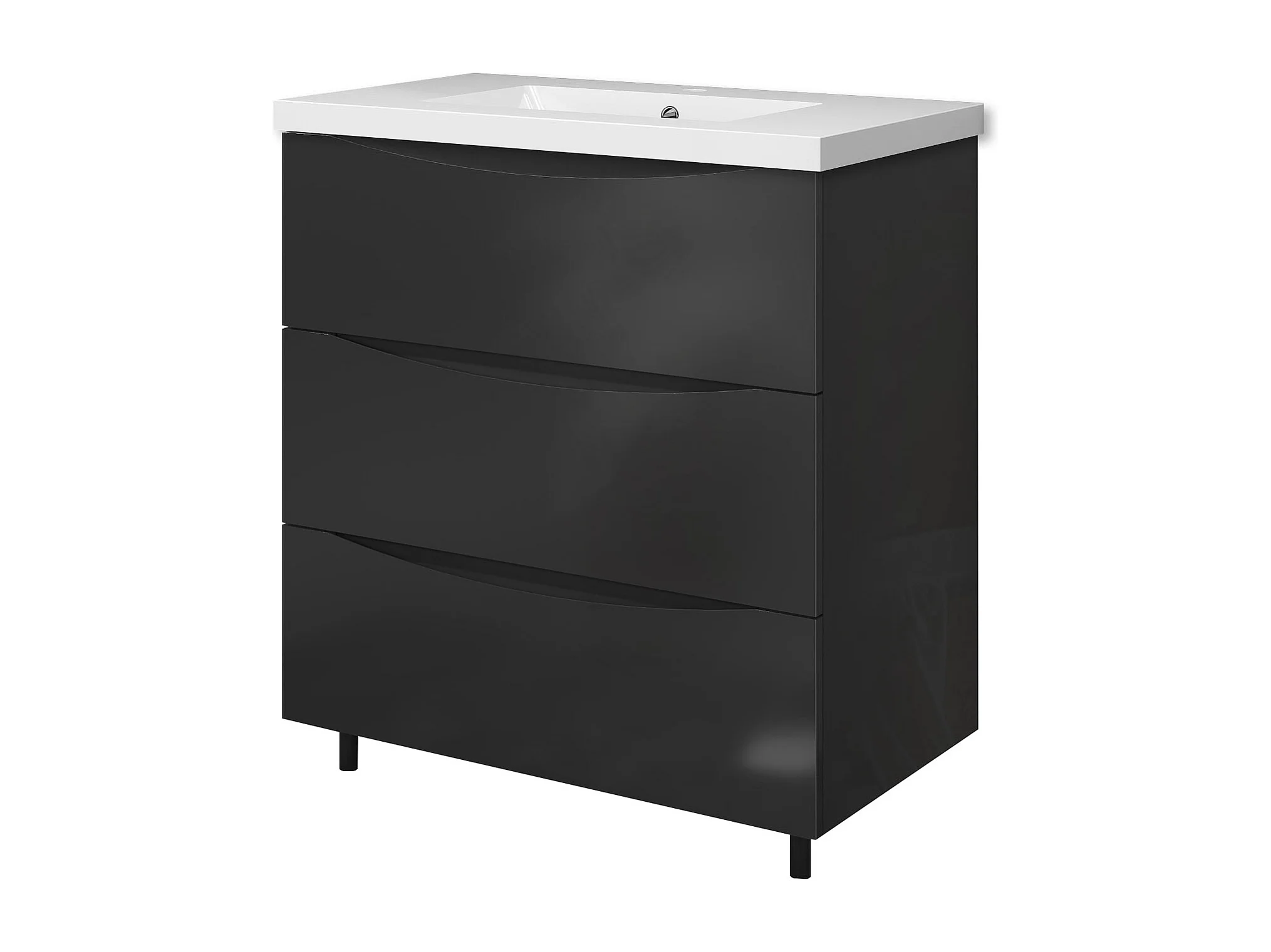 Meuble de salle de bain Brillant, Meuble de sol 80cm avec simple vasque + 3 tiroirs, Anthracite