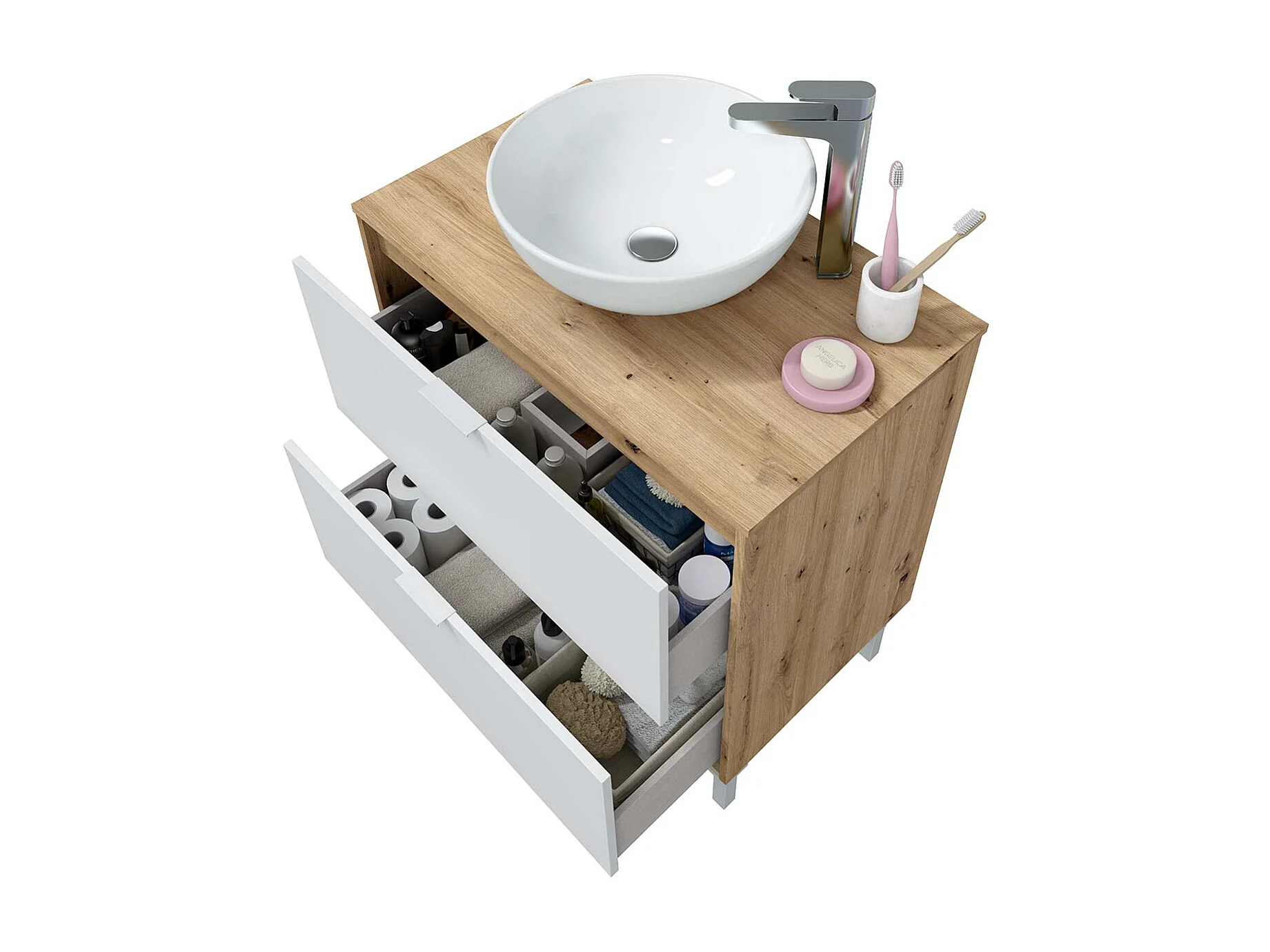Meuble de salle de bain coloris Chêne / blanc brillant (Lavabo non inclus)- Longueur 79 x Hauteur 79 x Profondeur 45 cm