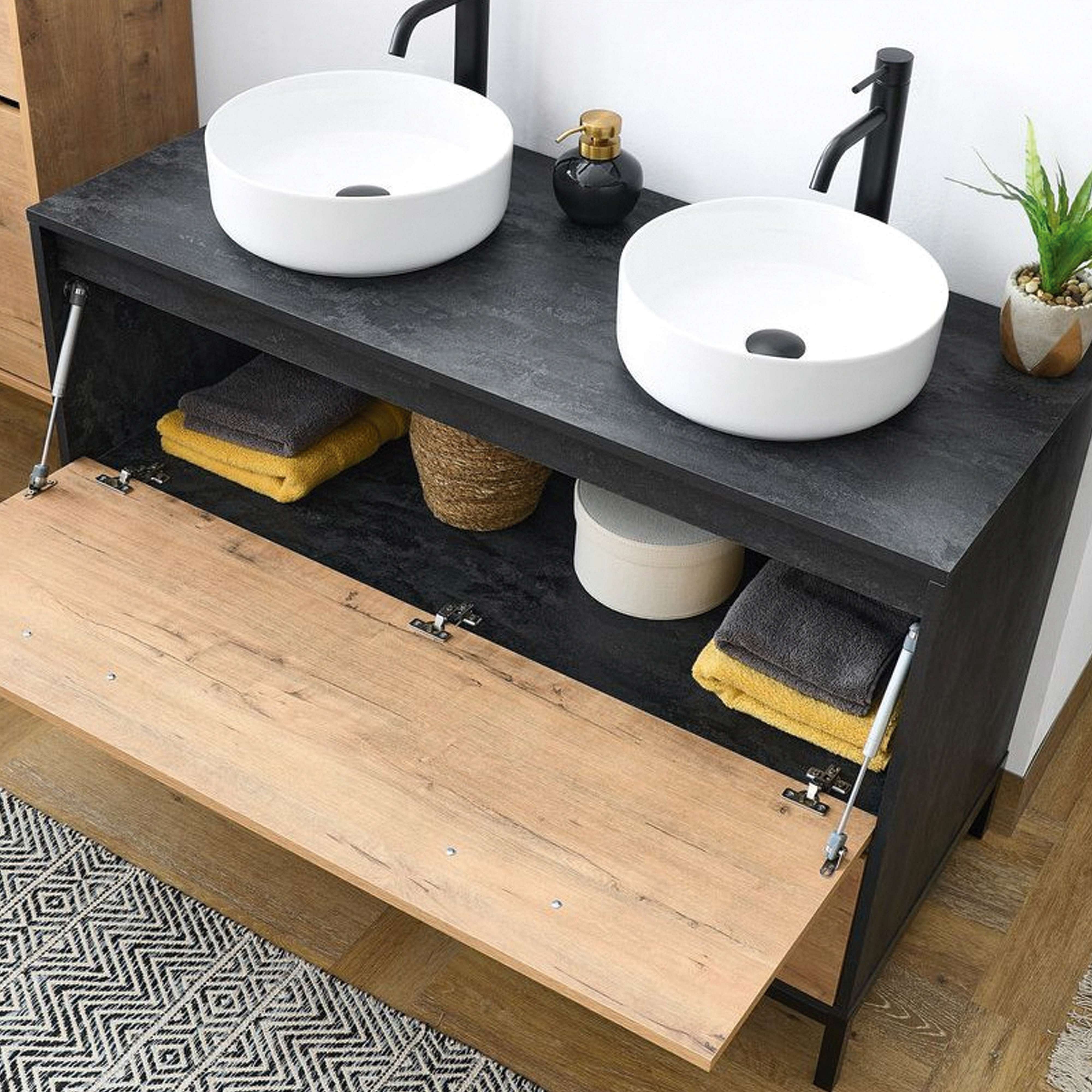 Meuble de salle de bain double industriel Sena Chêne doré/noir 120 x 92 x 50 cm (sans lavabo)