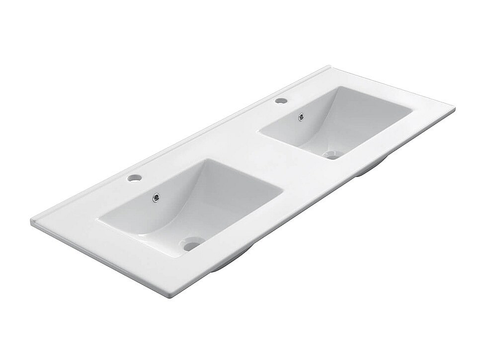 Meuble de salle de bain double vasque - 4 tiroirs - ALBA et miroir Led STAM - blanc-Chêne - 120cm