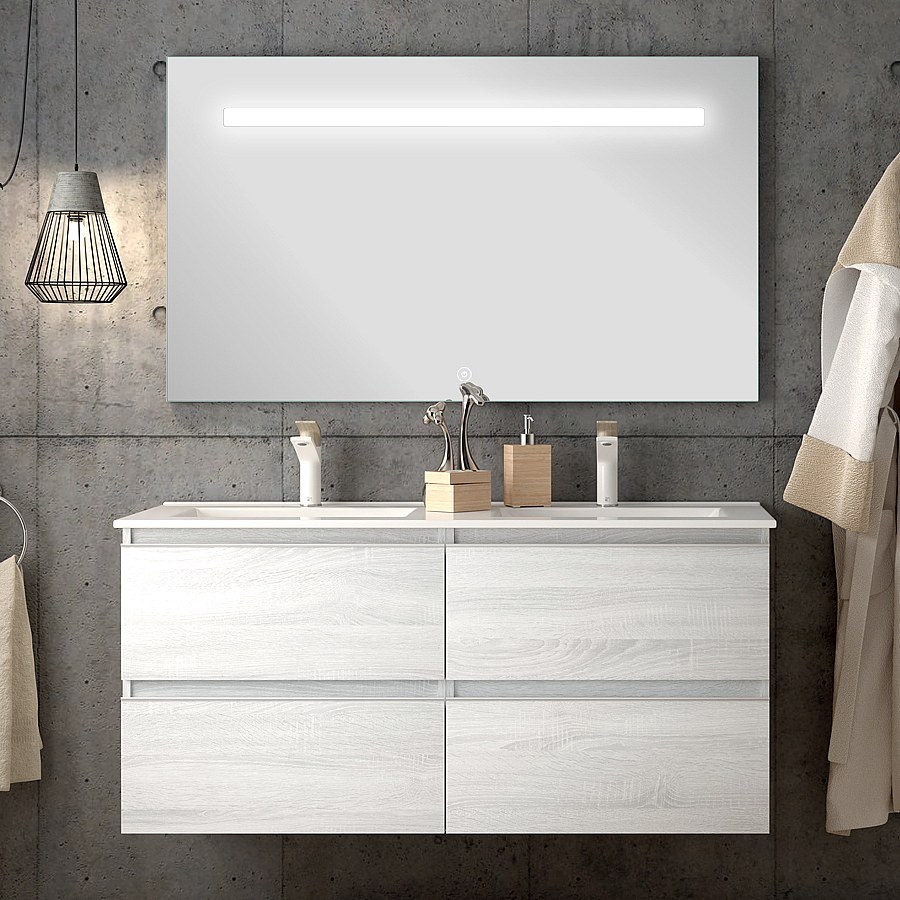 Meuble de salle de bain double vasque - 4 tiroirs - BALEA et miroir Led STAM - hibernian (bois blanchi) - 120cm