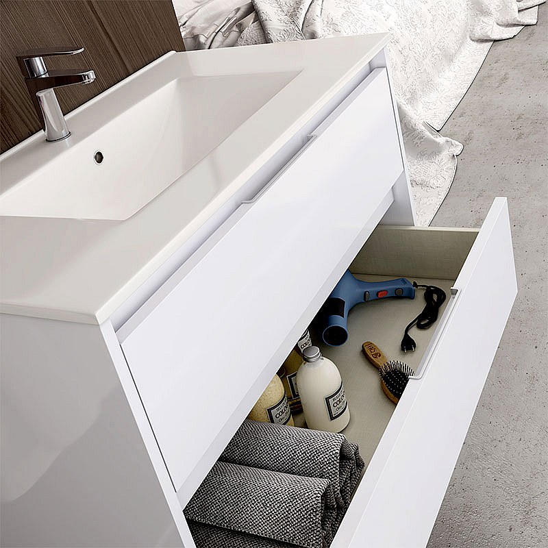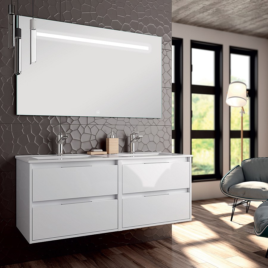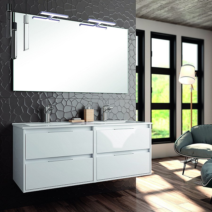 Meuble de salle de bain double vasque - 4 tiroirs - IRIS et miroir Led STAM - blanc - 120cm