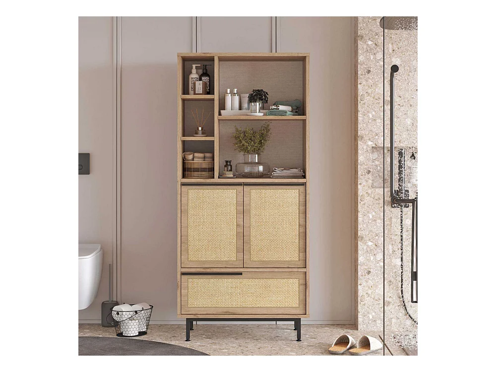 Meuble de salle de bain en aggloméré et effet cannage Only