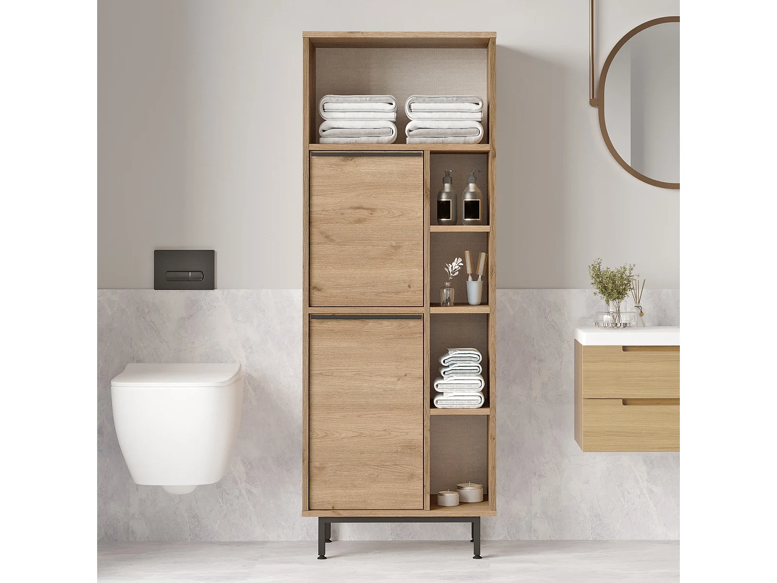 Meuble de salle de bain en bois "ON10C" - 60 x 46 x 161 cm - Marron