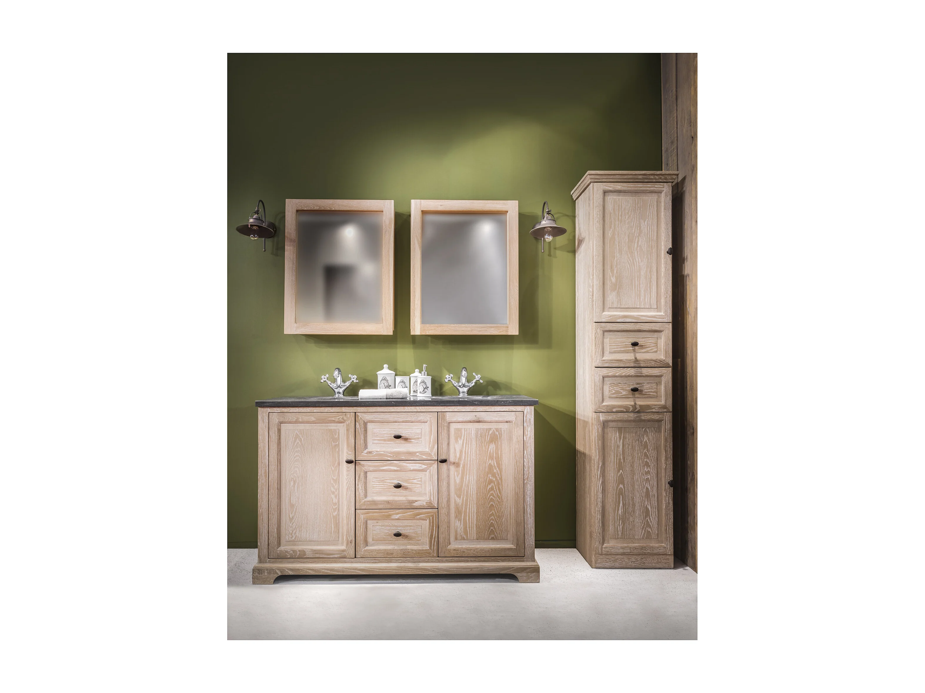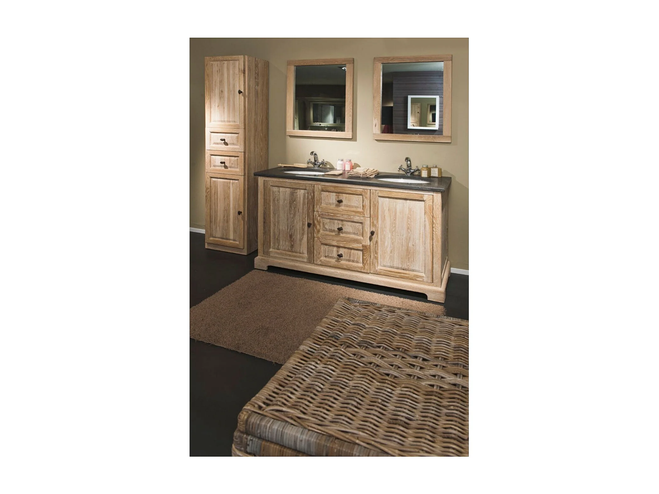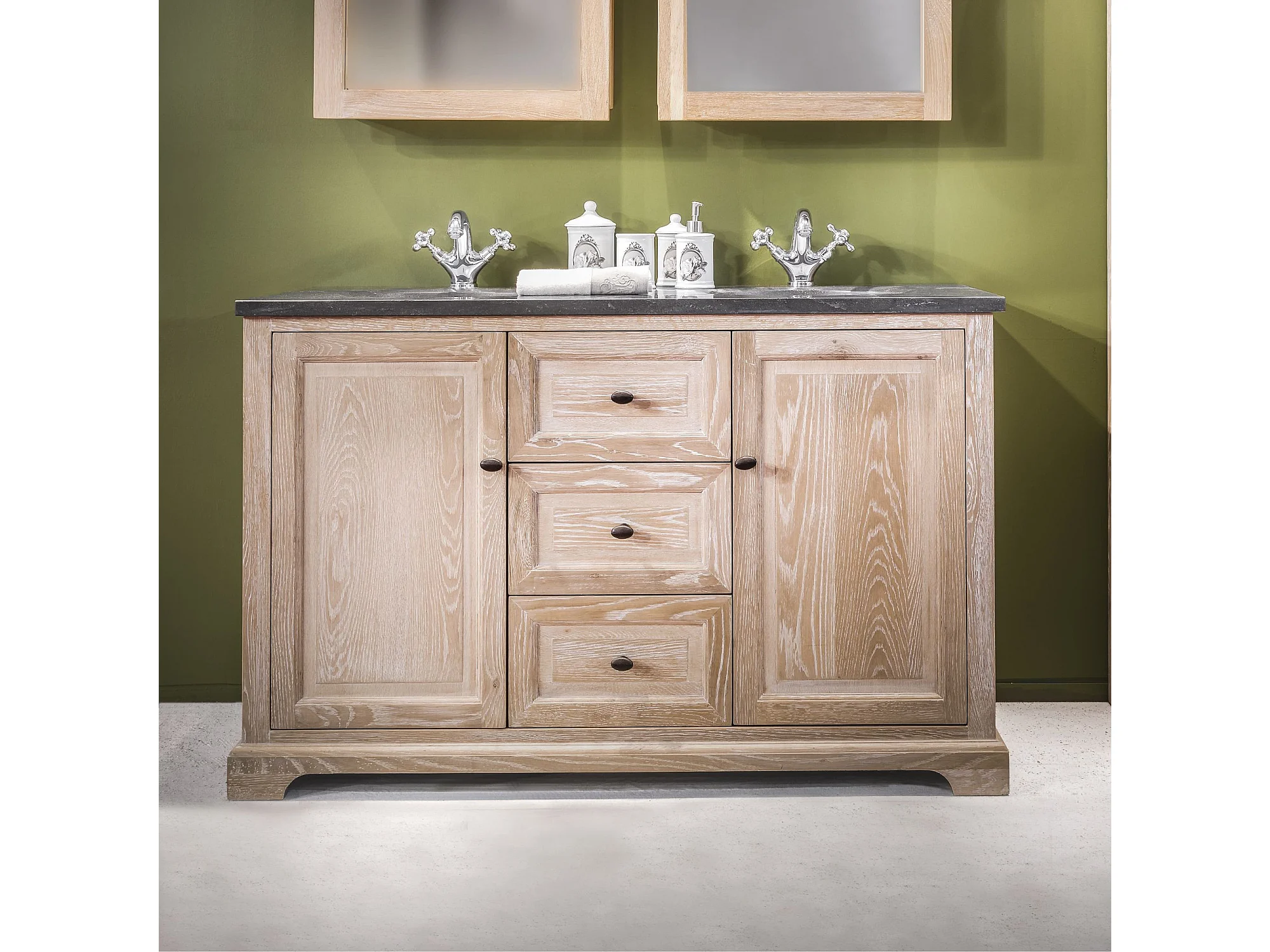 Meuble de salle de bain en chêne double vasque et plan en pierre - VIENNE II